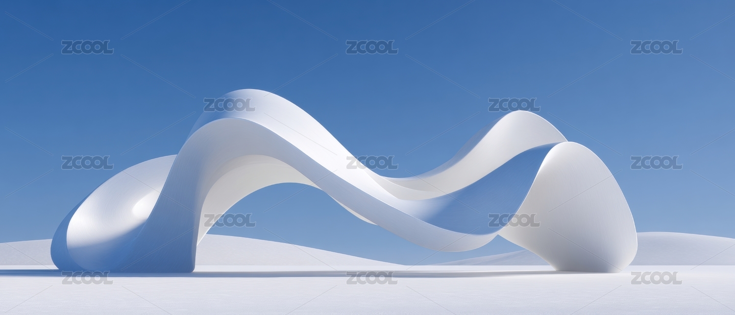 白色抽象波浪雕塑与蓝天