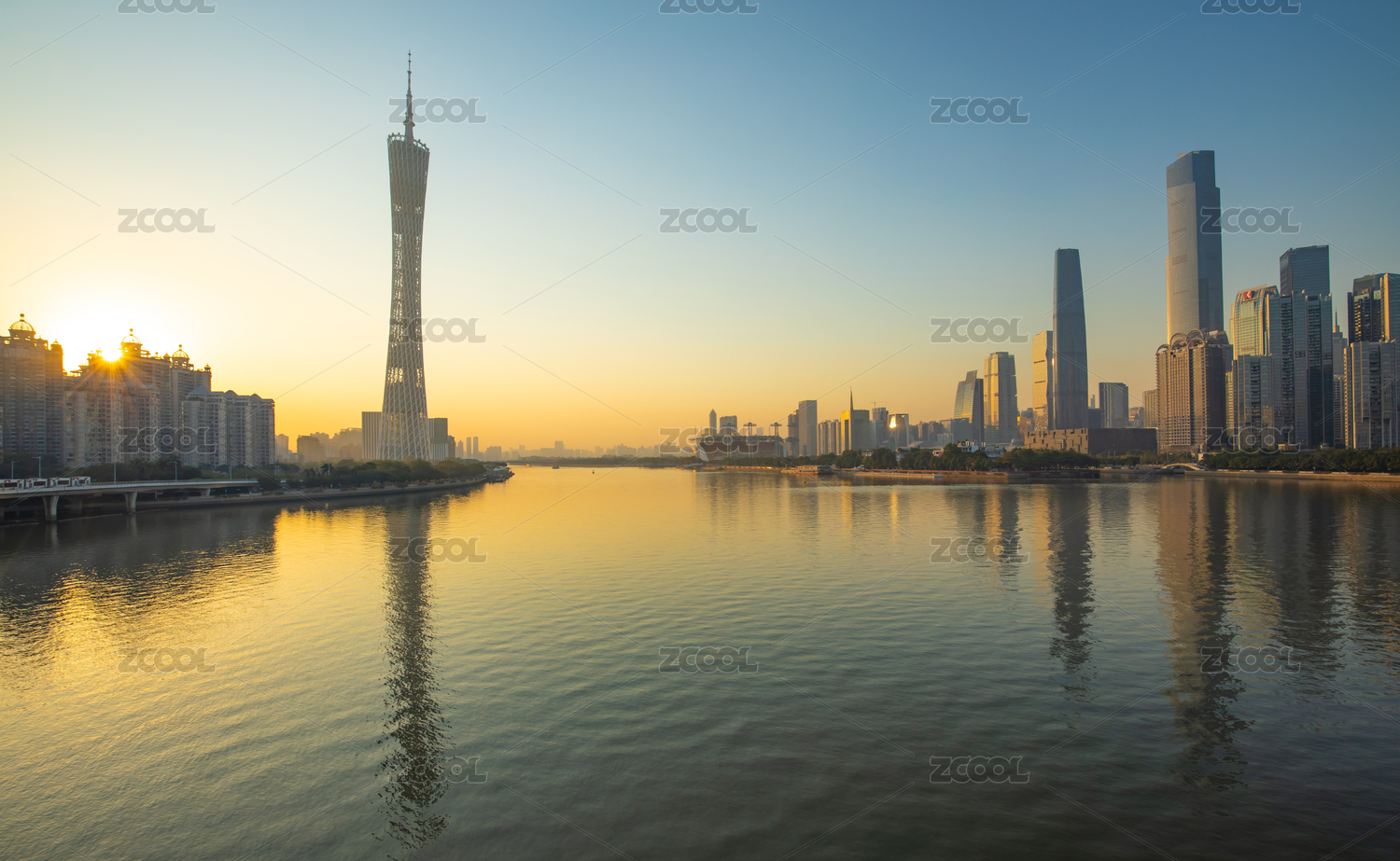 东塔,西塔,写字楼,办公楼,楼宇,珠江,江河,天空,风光,倒影