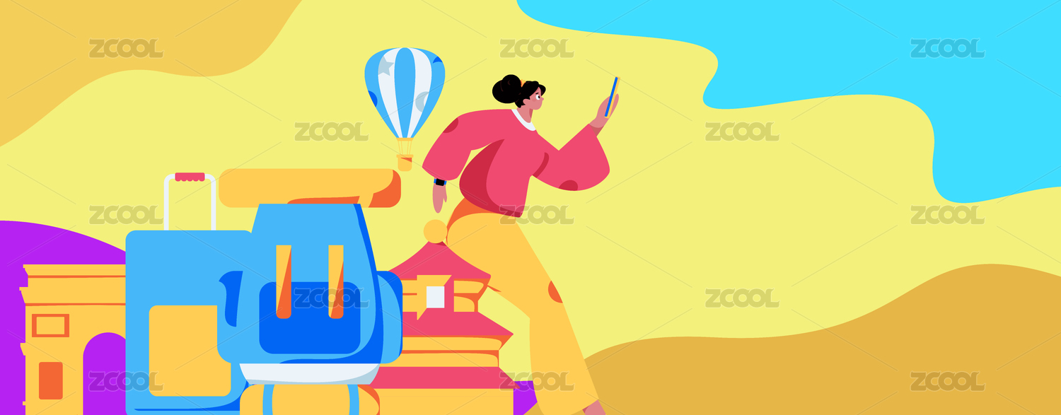 节假日旅游出行人物互联网背景矢量手绘插画