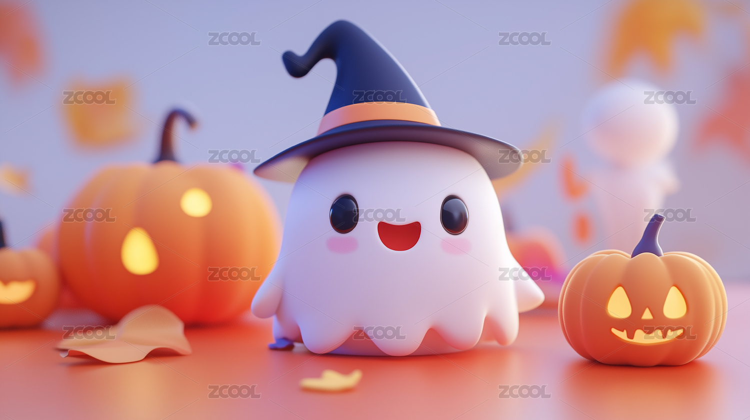 3D庆祝万圣节白色可爱幽灵和邪恶南瓜