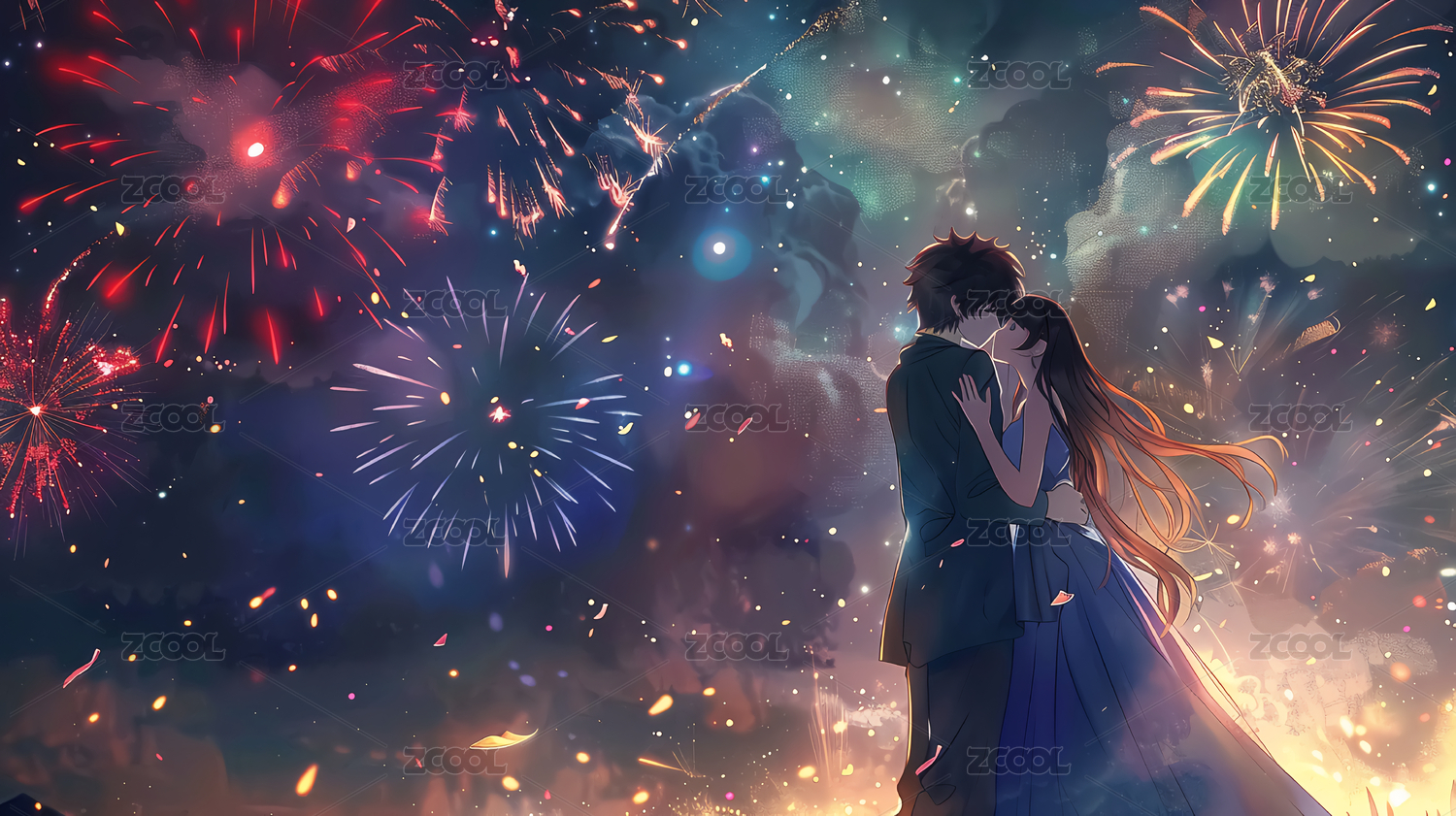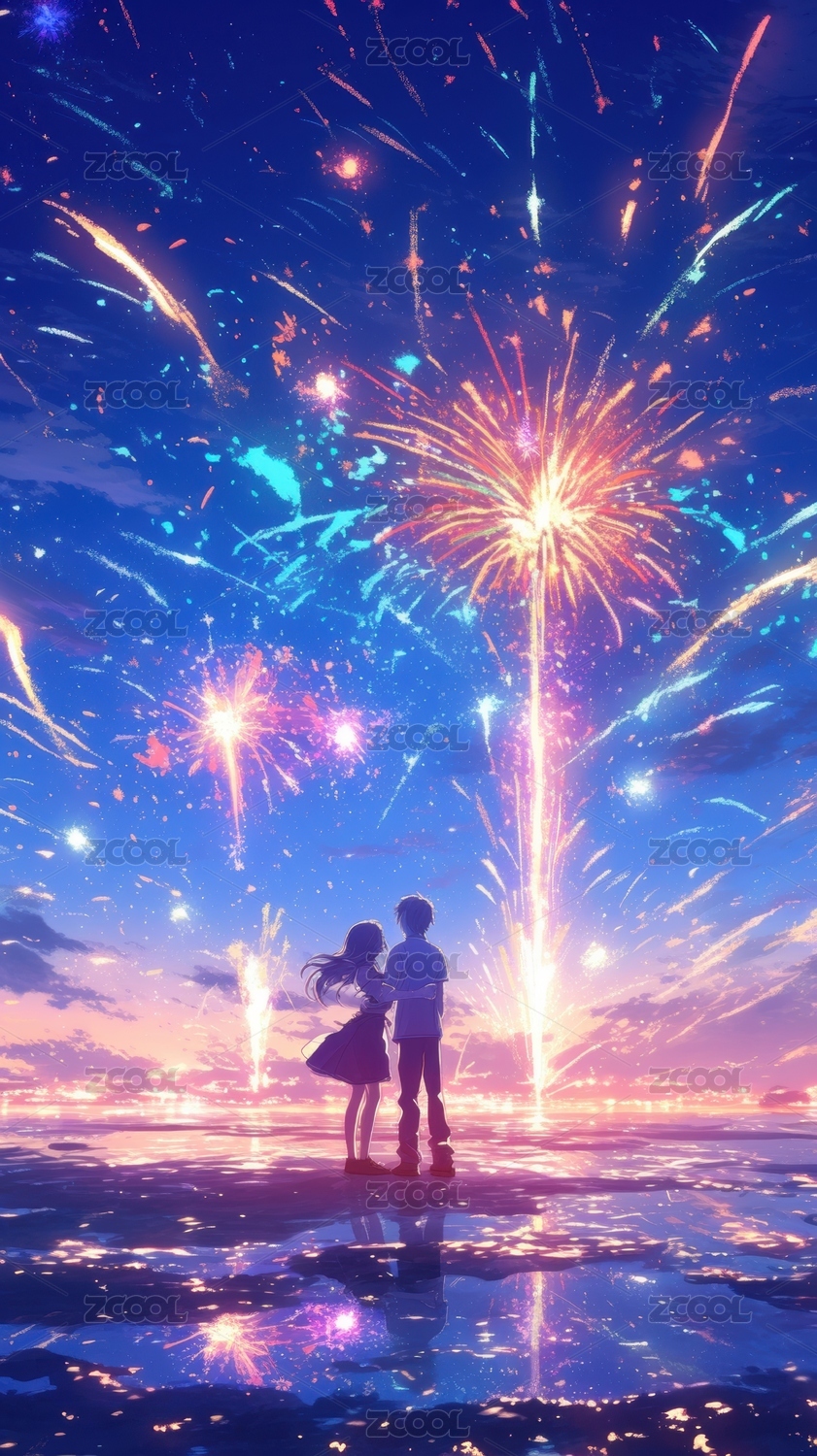 星空,海洋,夕阳,浪漫,情侣,夜晚,烟花,温馨