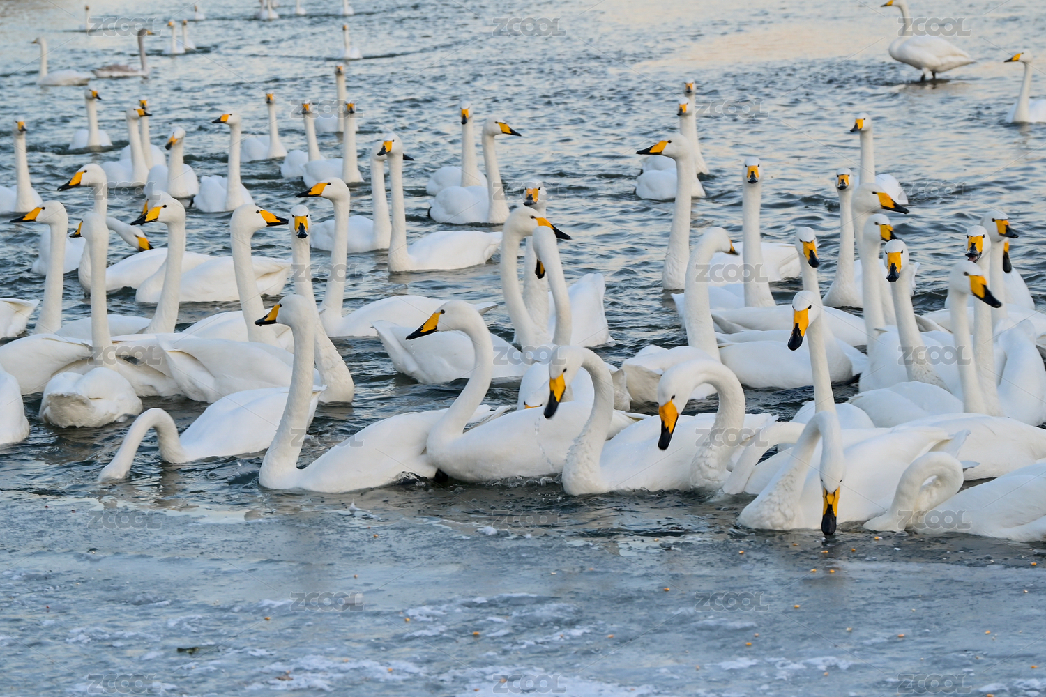 山东荣成天鹅湖里越冬的西伯利亚大天鹅