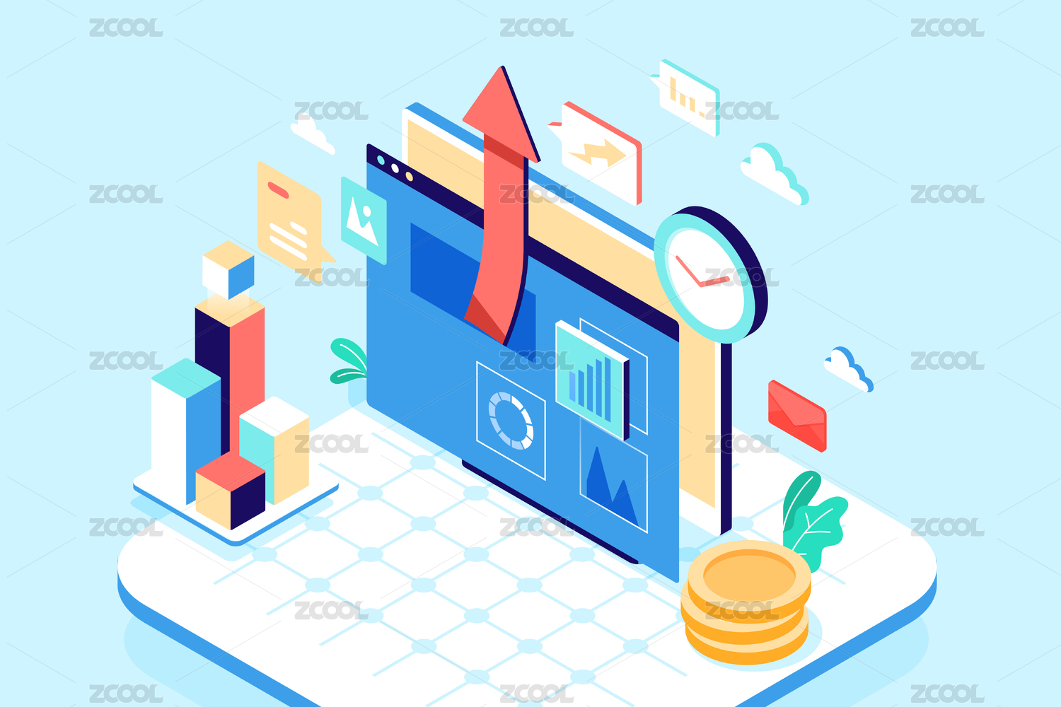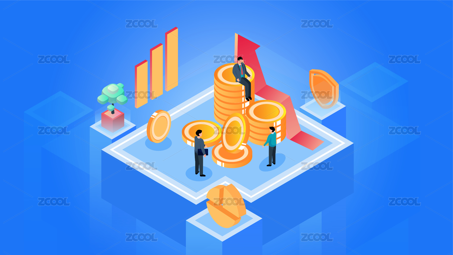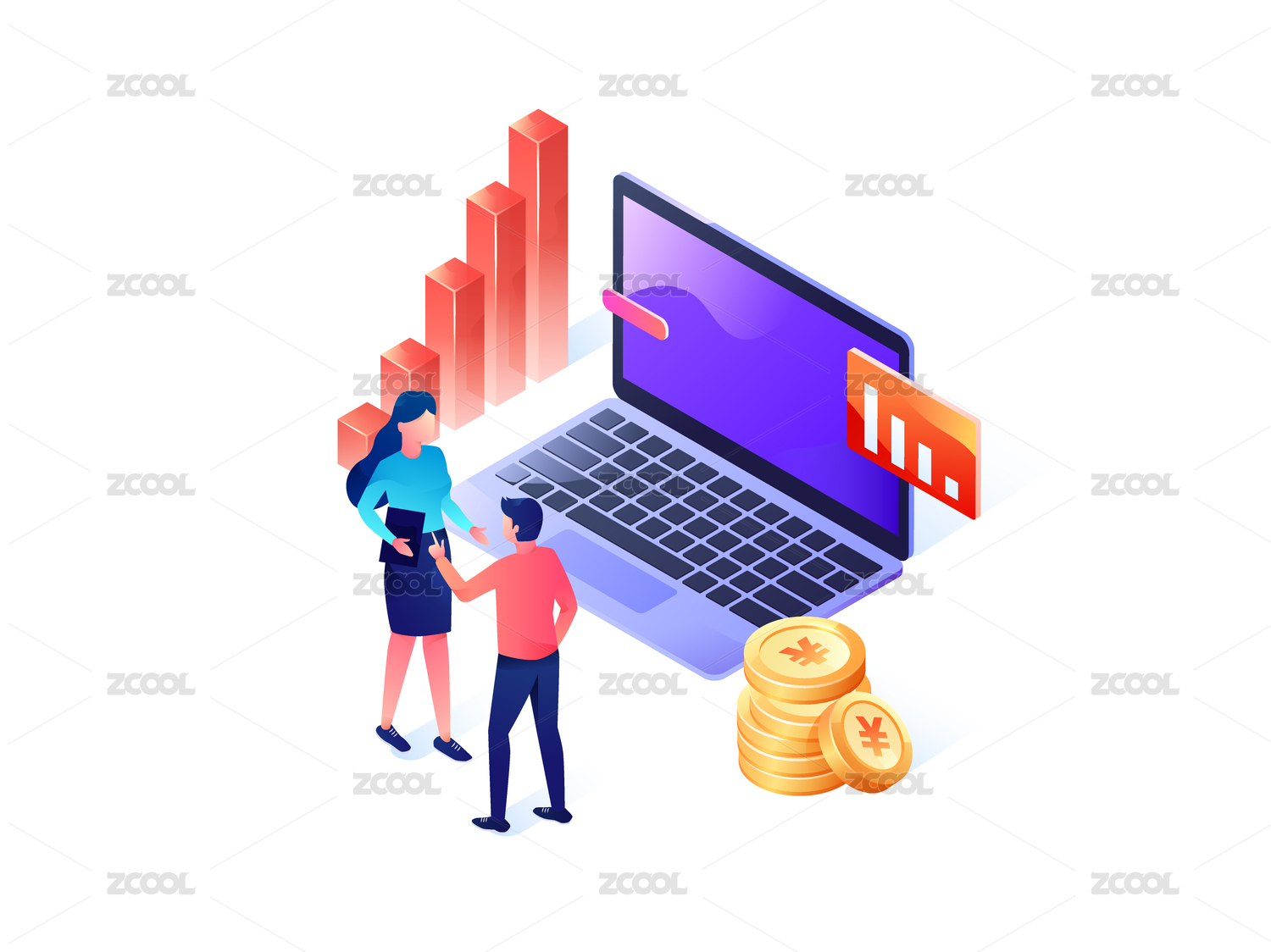 金融,商务,科技,人物,金币,电脑,等距,轴测图,办公,交流