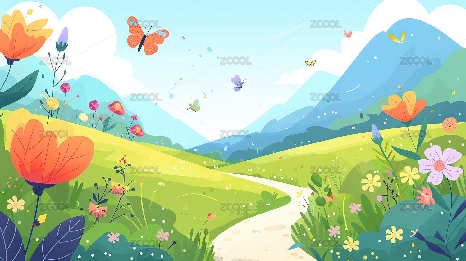 卡通春季春天立春节气节日户外郊游矢量渐变