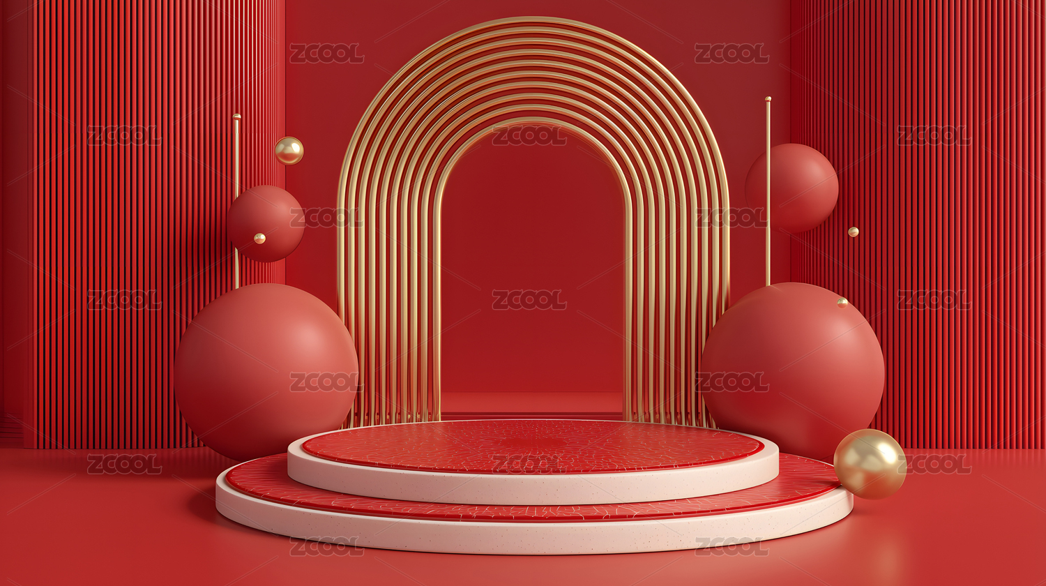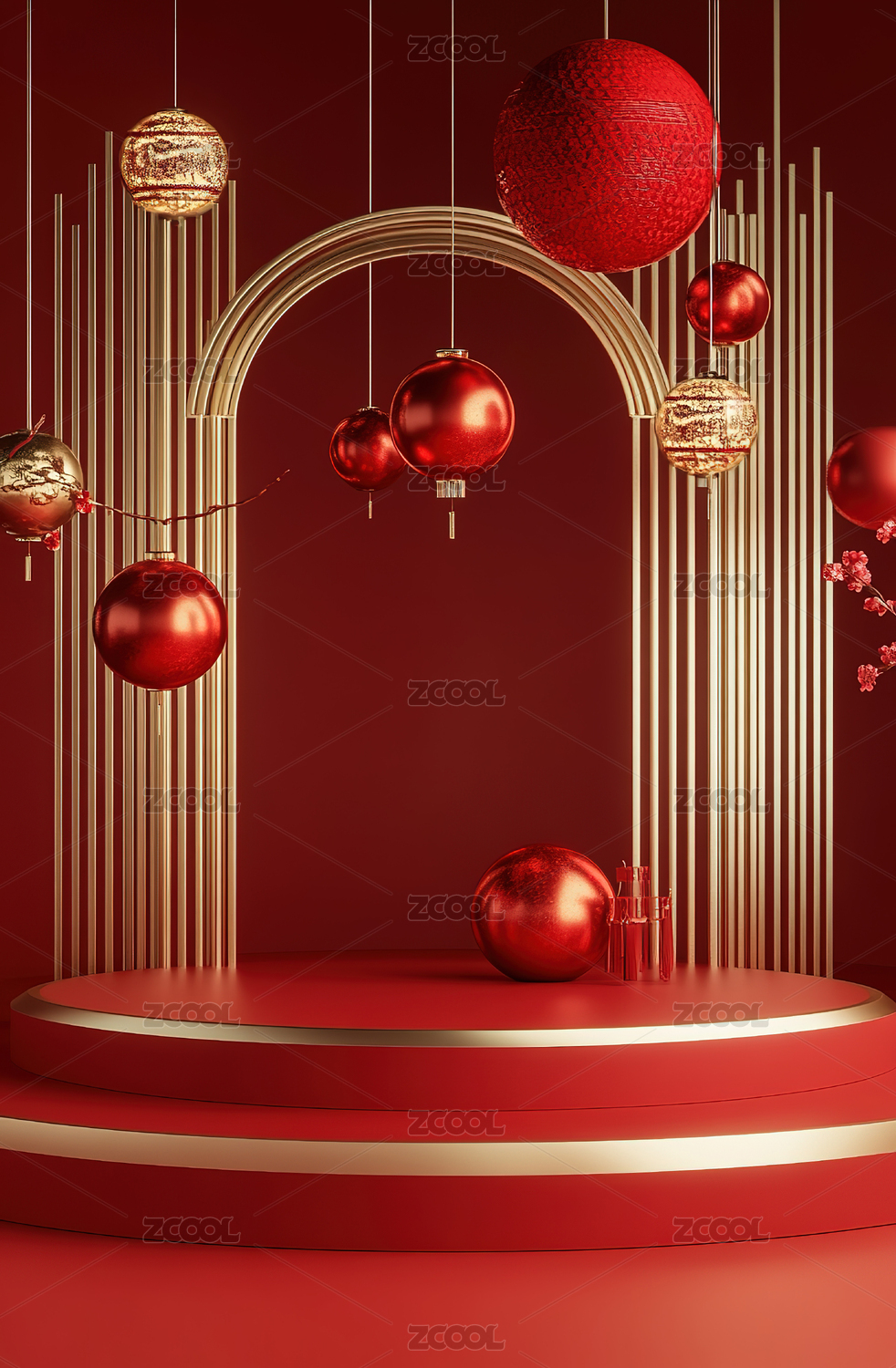 三维,传统,春节,电商,国风,庆祝,喜庆,国潮,展示台,台阶