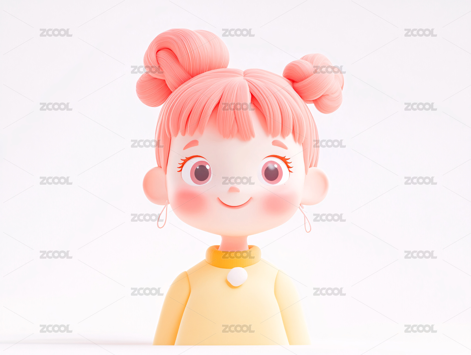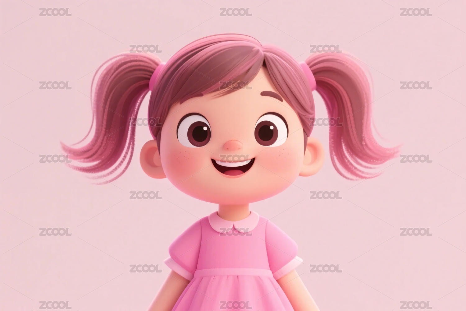 3D渲染的可爱卡通小女孩儿童节概念插图