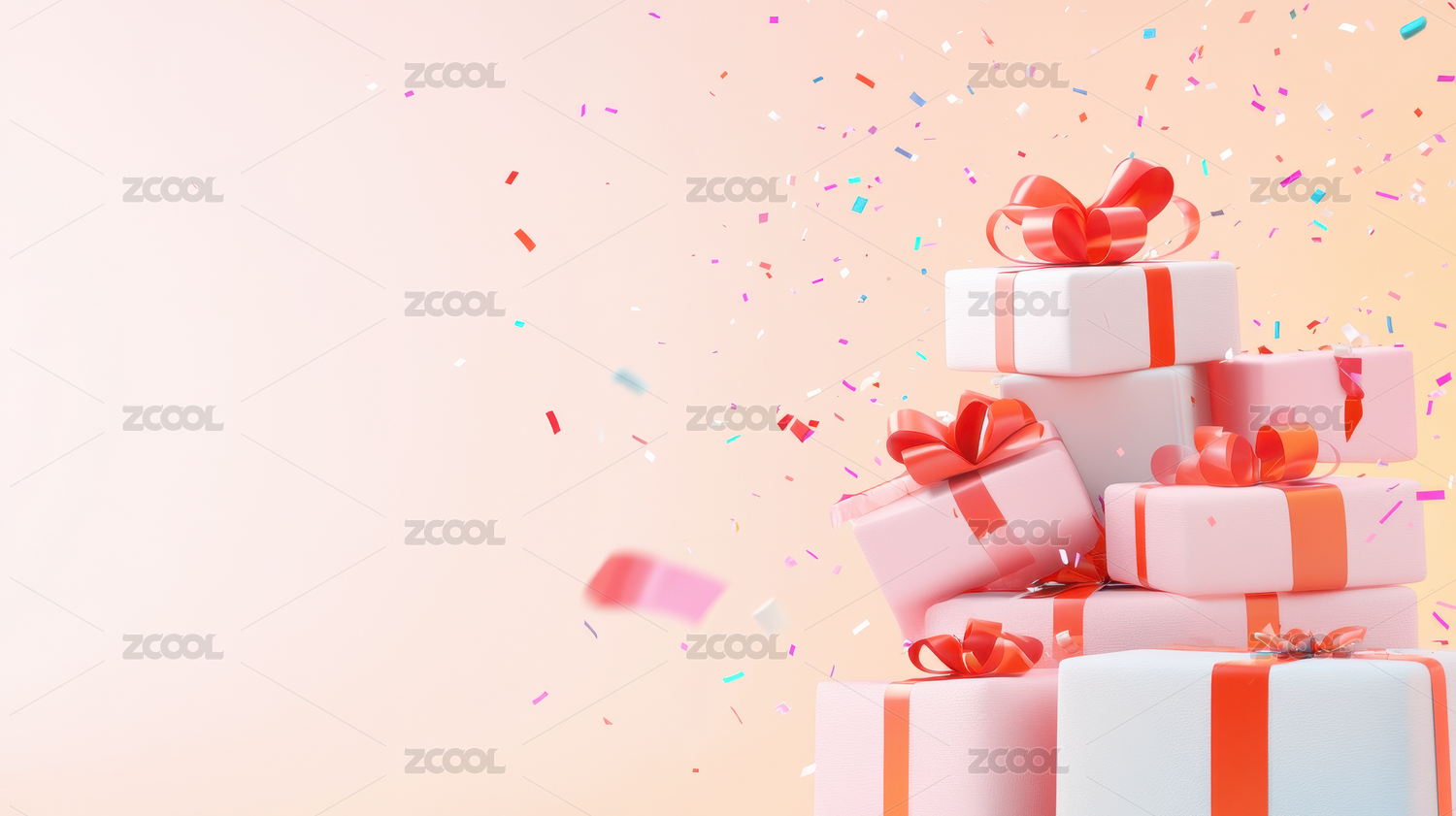 庆祝时刻:堆叠的礼品盒和五彩纸屑