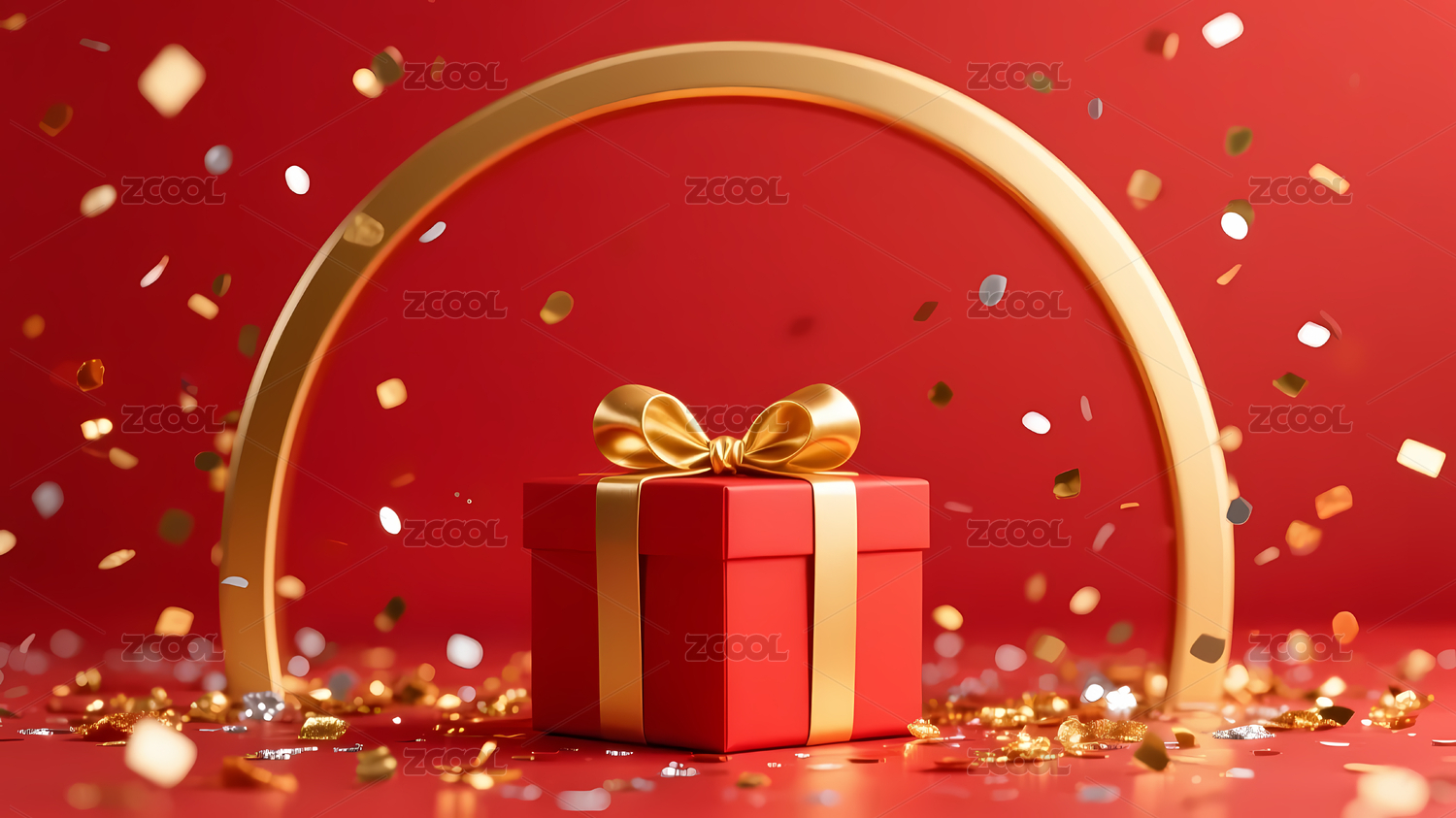 装饰着礼品盒的氛围感产品展台电子商务促销