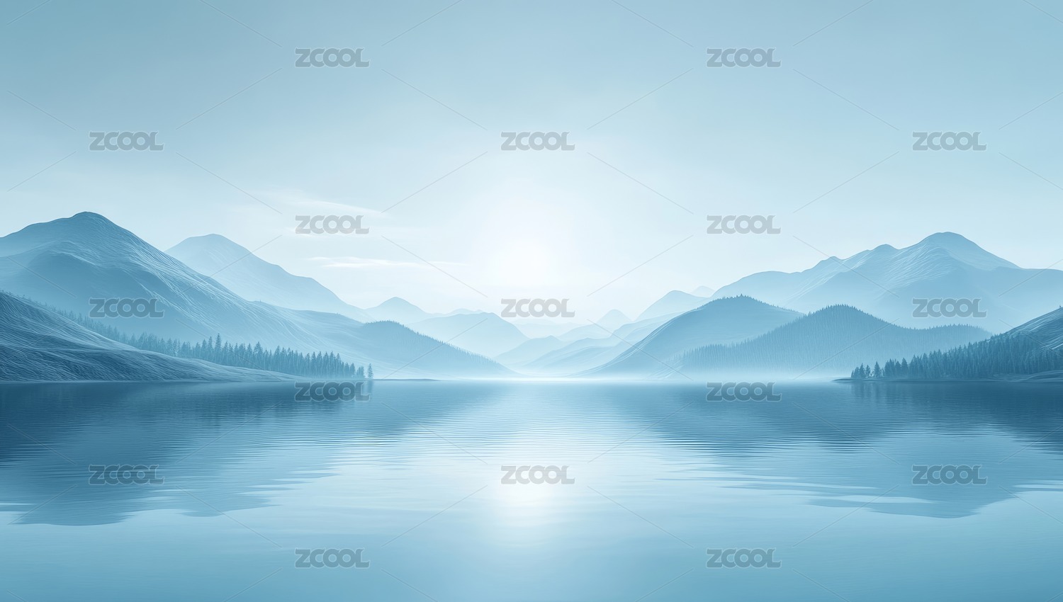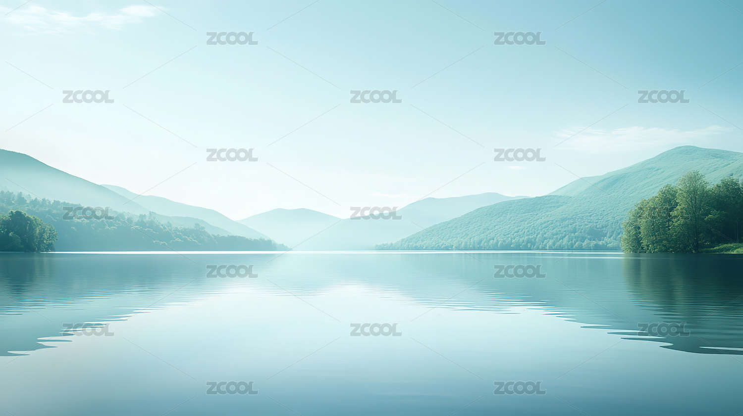 平静湖面远山