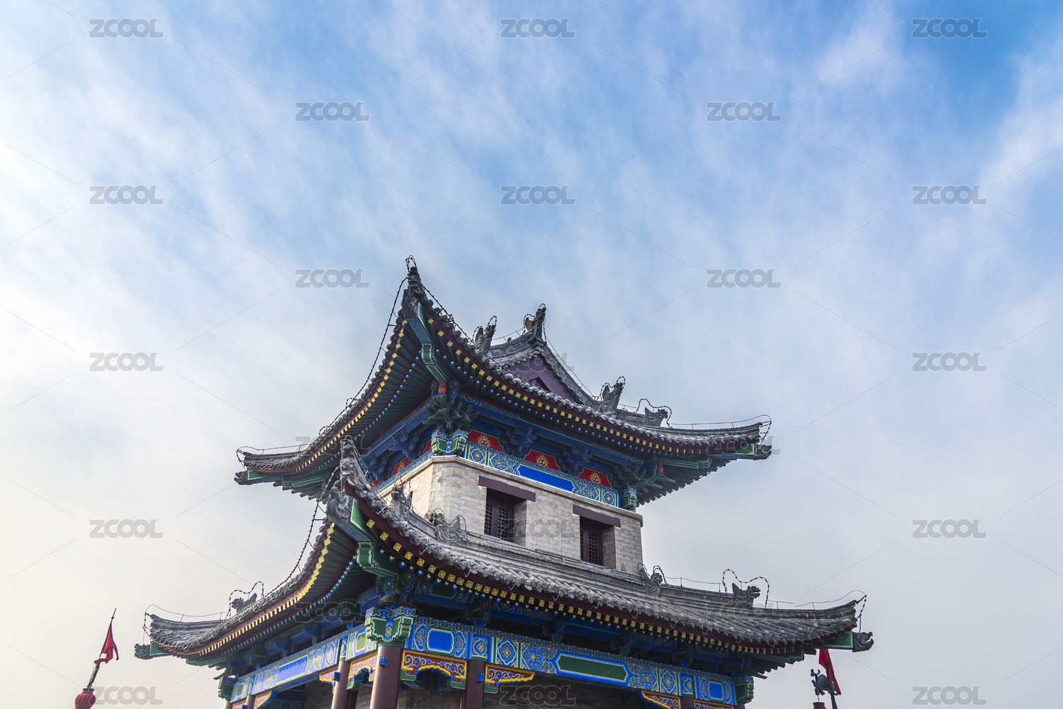 中国山西省大同市夜晚灯光古城墙园林建筑
