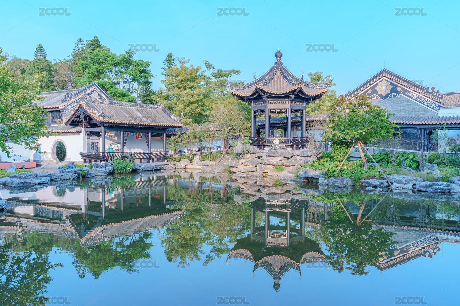 佛山顺峰山公园粤剧大观园传统岭南园林湖景