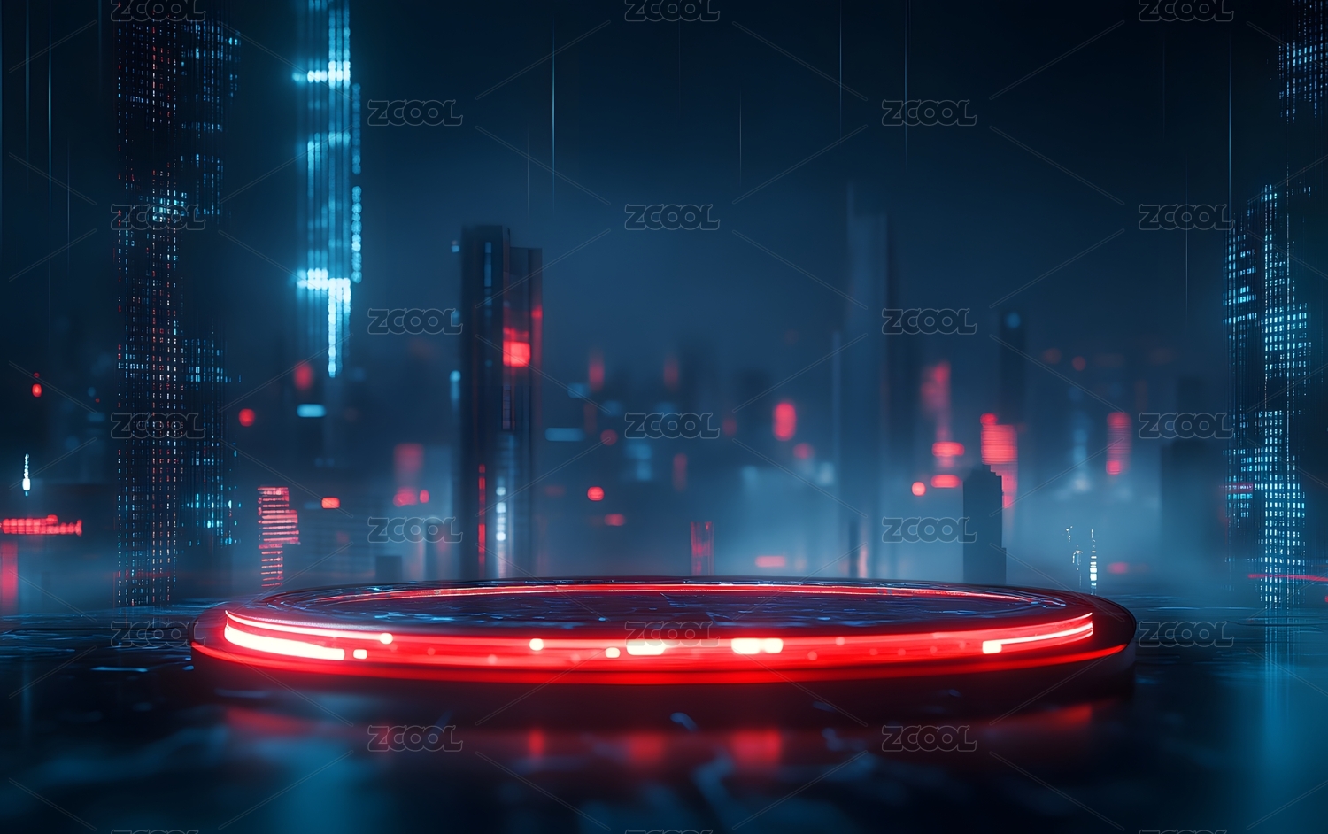 未来主义城市和圆形平台