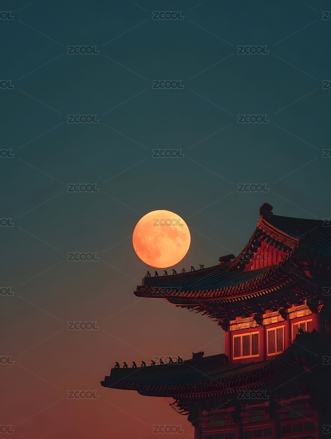 中秋节,节日,传统,圆月,月亮,月圆,团圆,玉兔,屋檐,古建筑