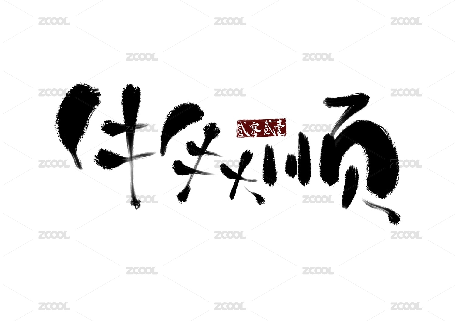 牛气冲天,牛年,书法,字体设计,毛笔字,2021,HEZODIAC2021