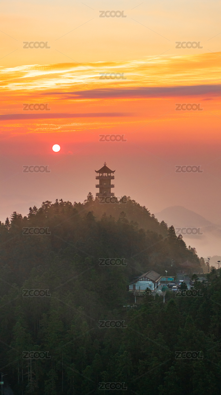 雨后黄昏临平山上的东莱阁