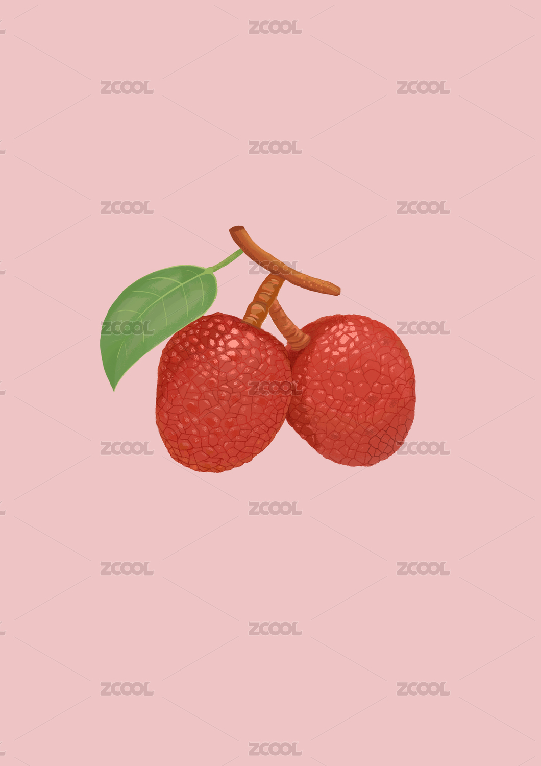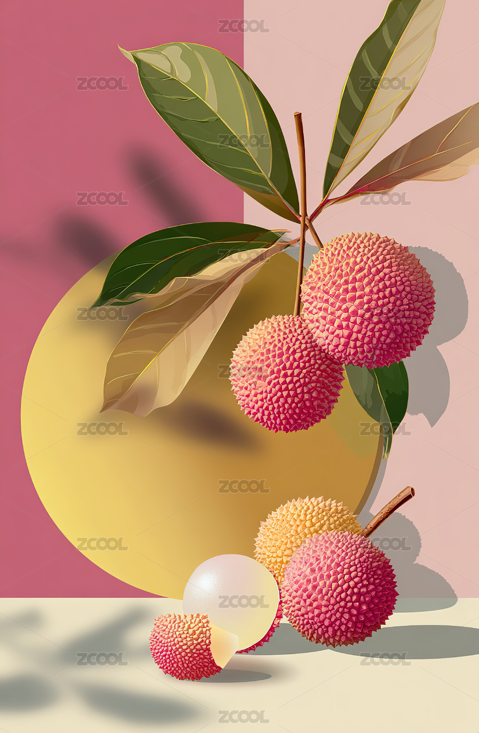 荔枝枝果色彩清新呈现美食插画的装饰视觉