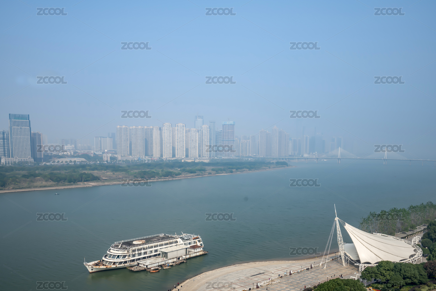 城市风光,城市天际线,远景,远眺,俯瞰,风帆广场,游轮,湘江,银盆岭大桥,福元路大桥
