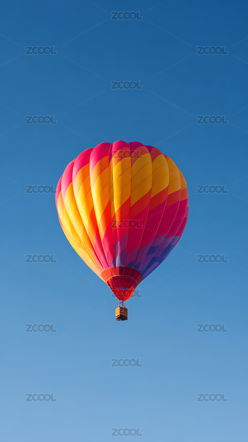 中国新疆伊犁特克斯蓝天白云彩色热气球