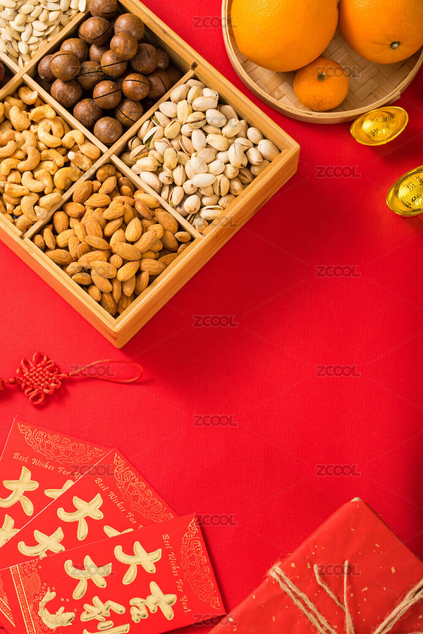 新年,传统节日,春节,中国年,喜庆,福,坚果,红色,洒金纸,红包