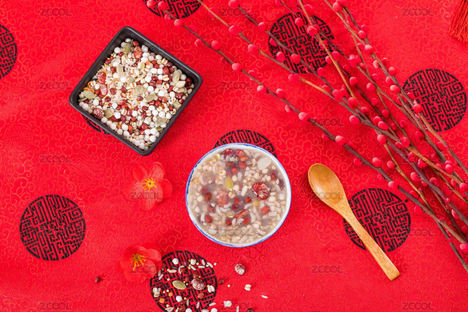 腊八节,腊八粥,粥,八宝粥,杂粮,五谷,谷物,桃花,红色,喜庆