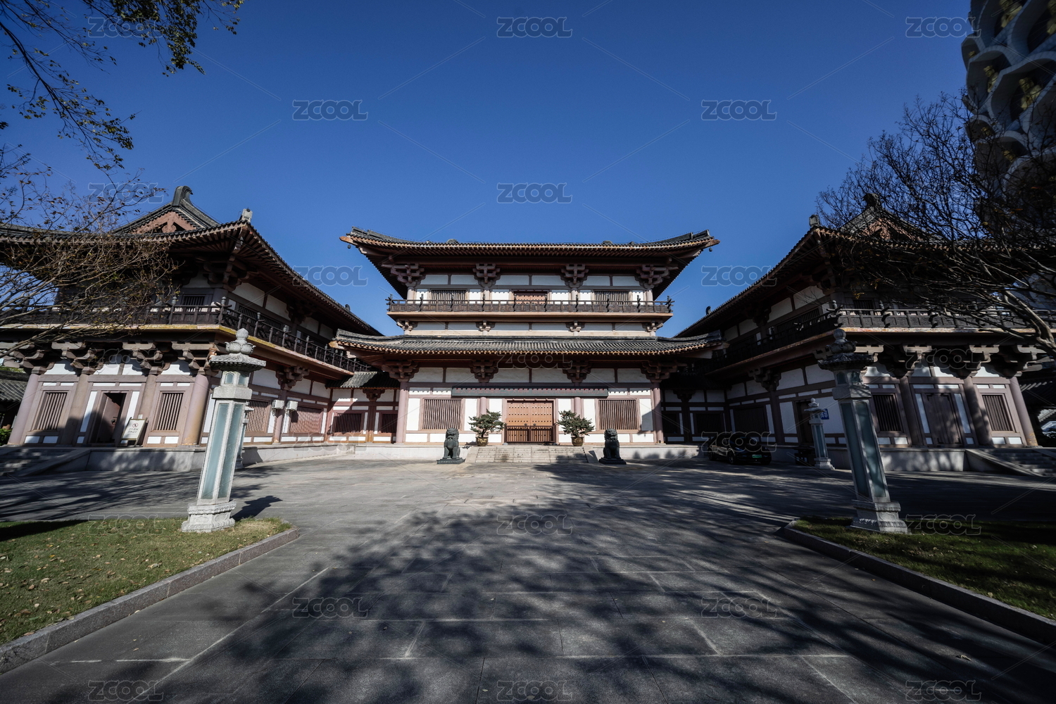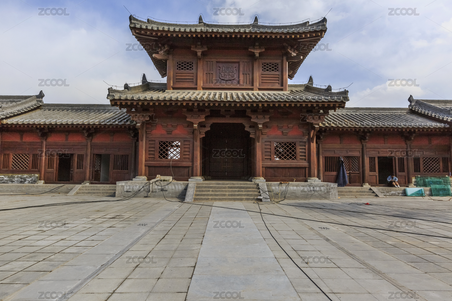 中国山西省大同市云冈石窟洞窟阁楼园林建筑