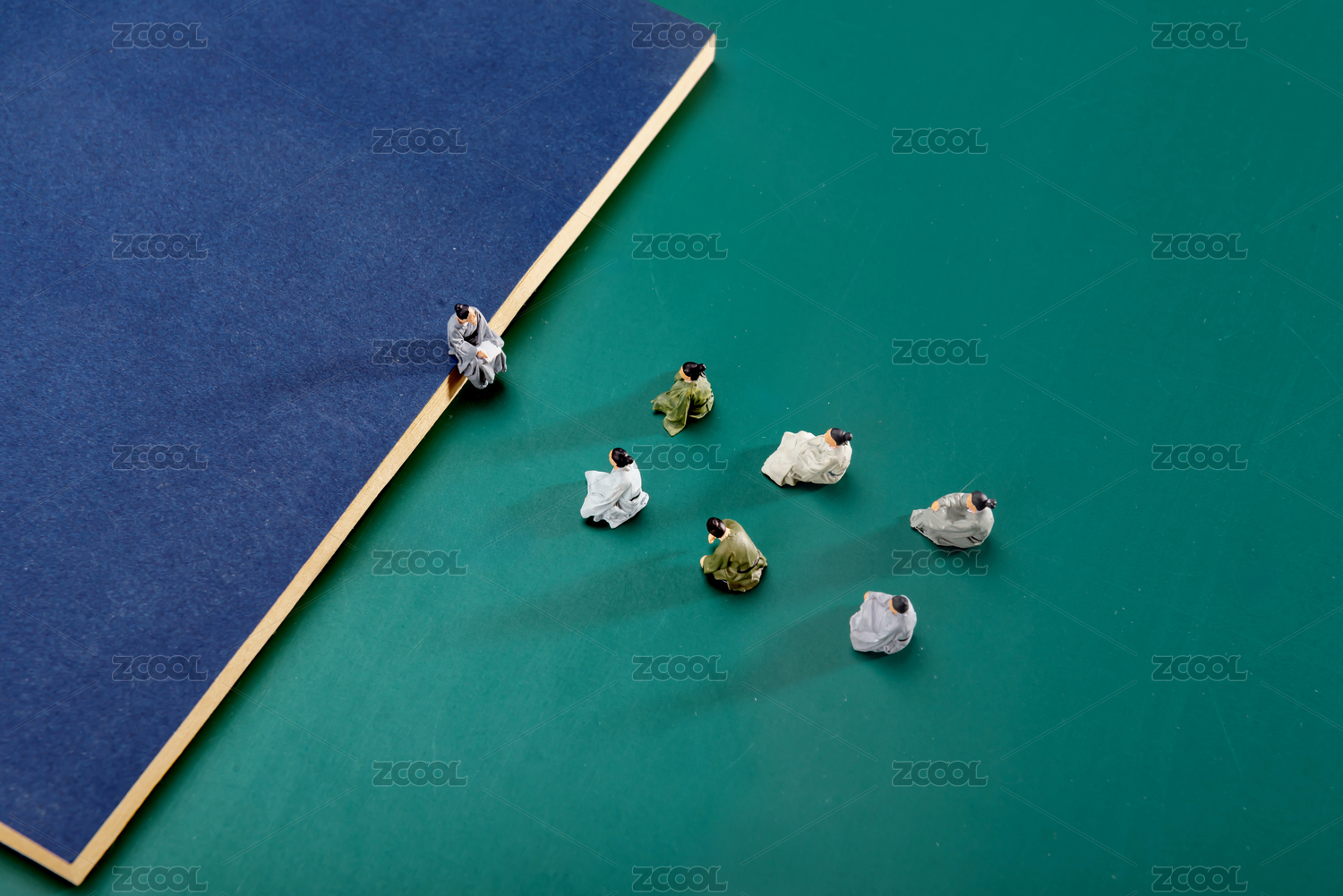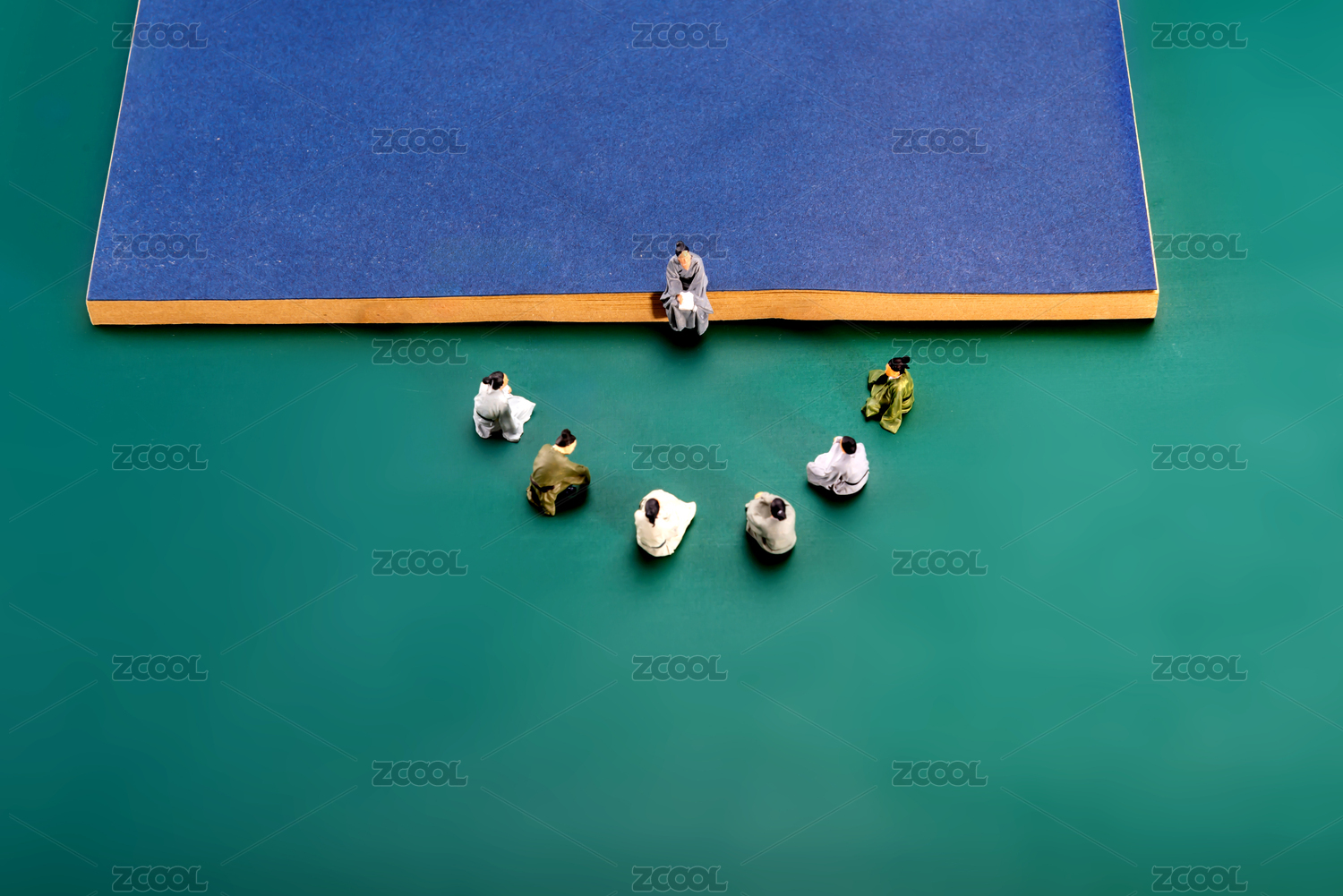 漫无目的的人群中在看书学习的人士微缩创意