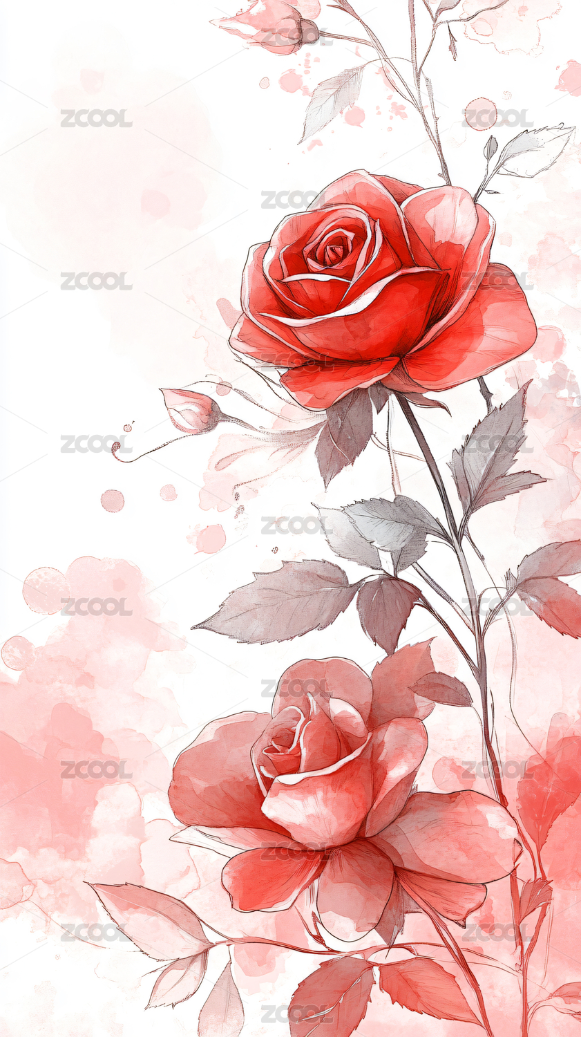 唯美玫瑰花水墨风格插图