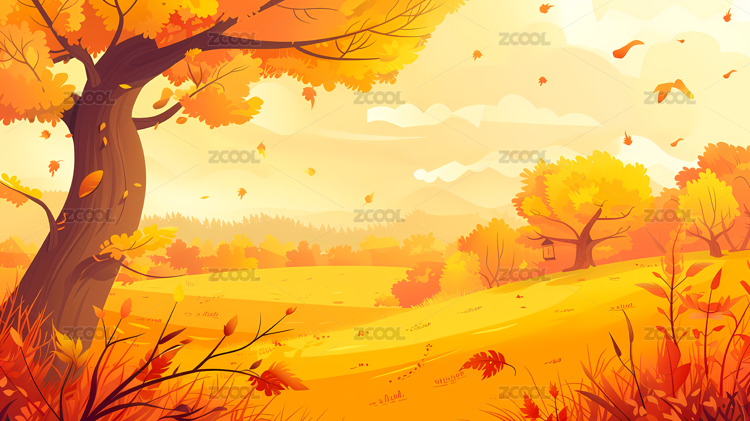 秋天自然风景插画