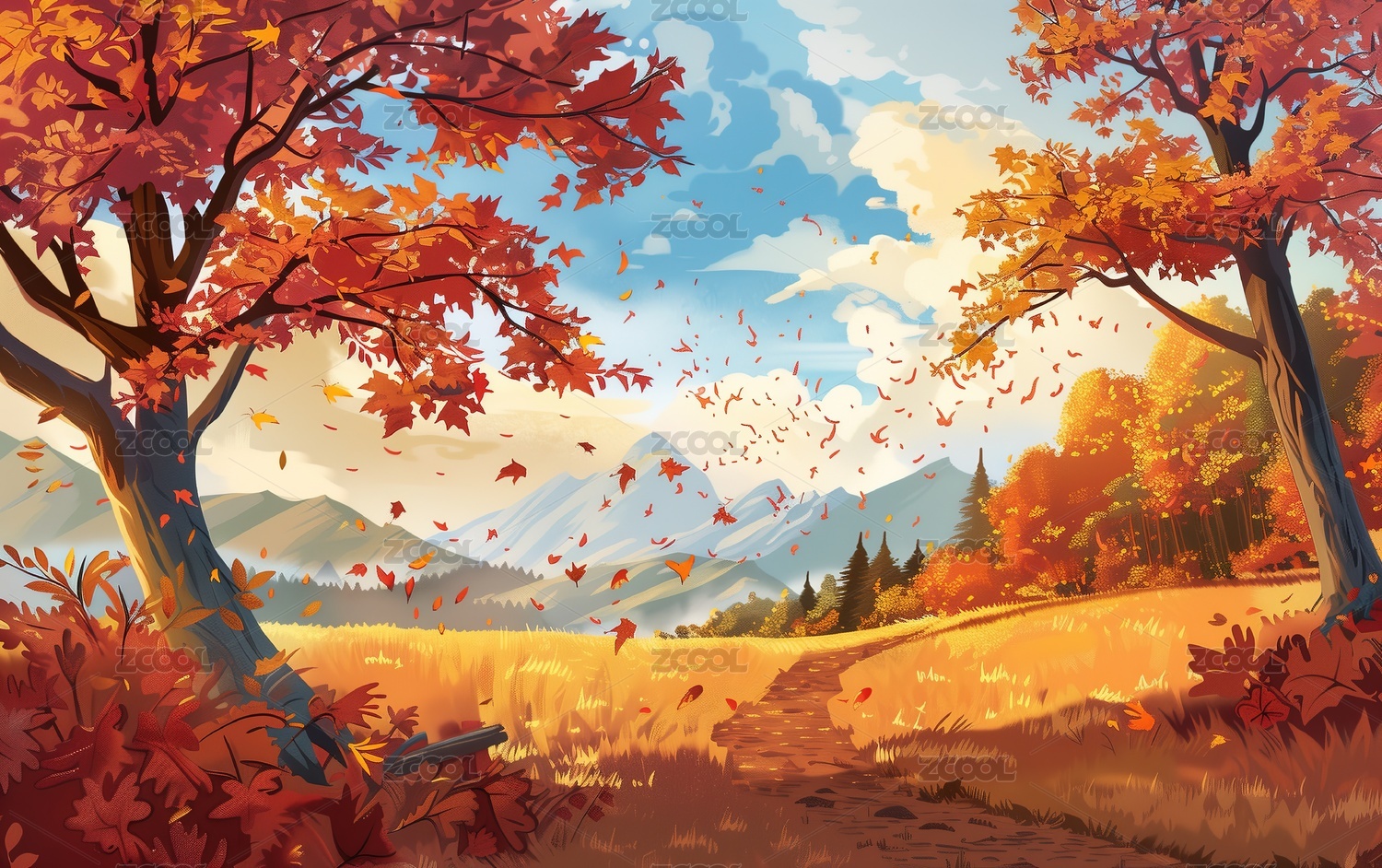 秋季秋天风景插画