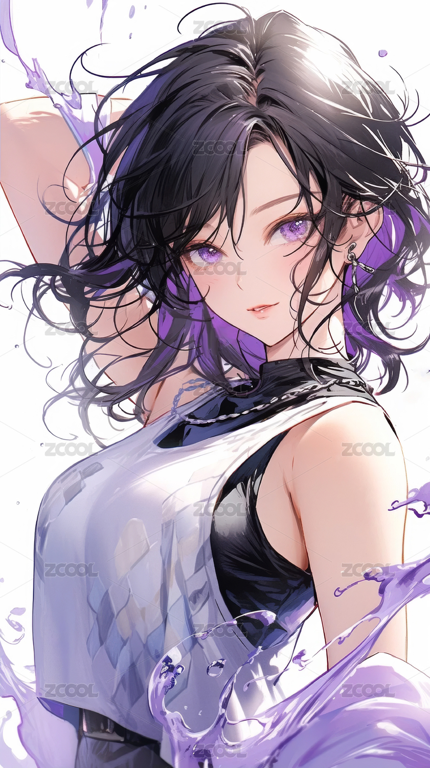 动漫风格的时尚紫色女孩