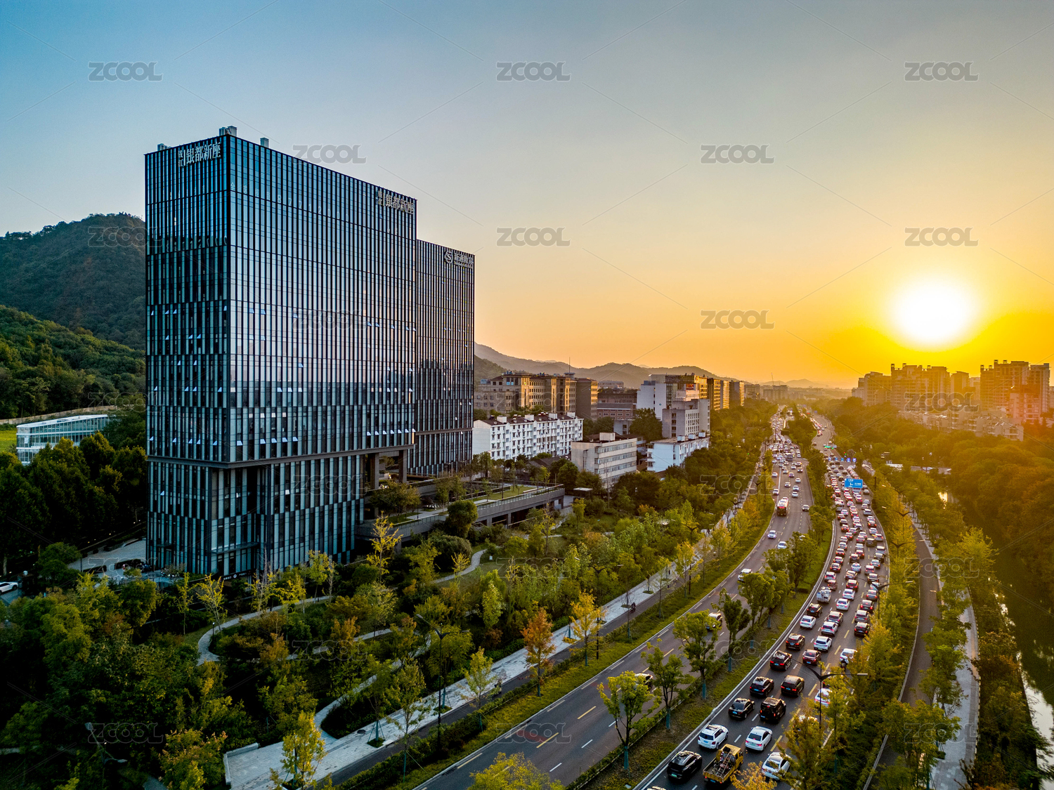 杭州,天目山路,城市,都市,建筑,山,老和山,夕阳,户外,无人