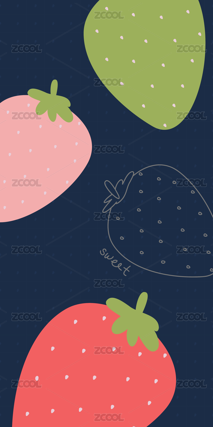 扁平手绘草莓水果矢量插画背景社交媒体海报