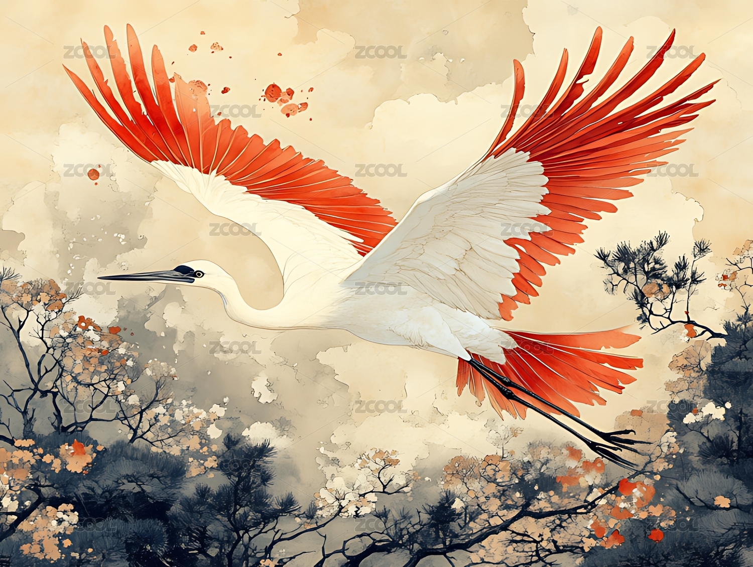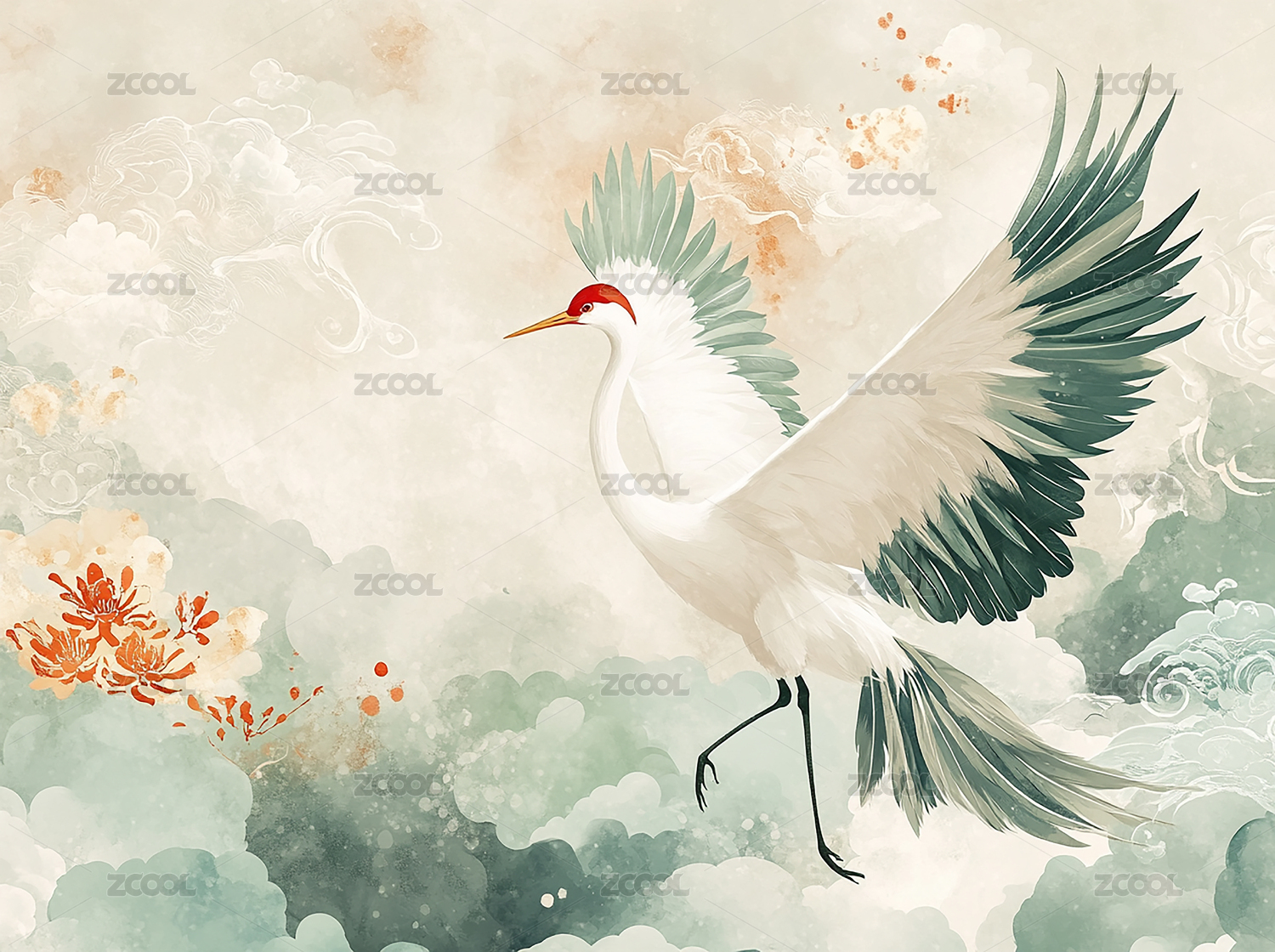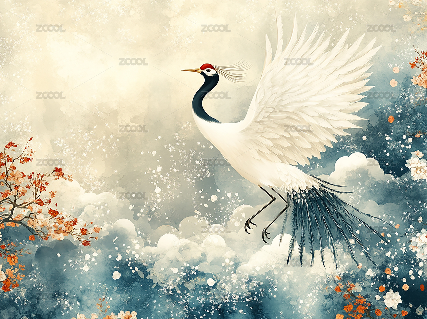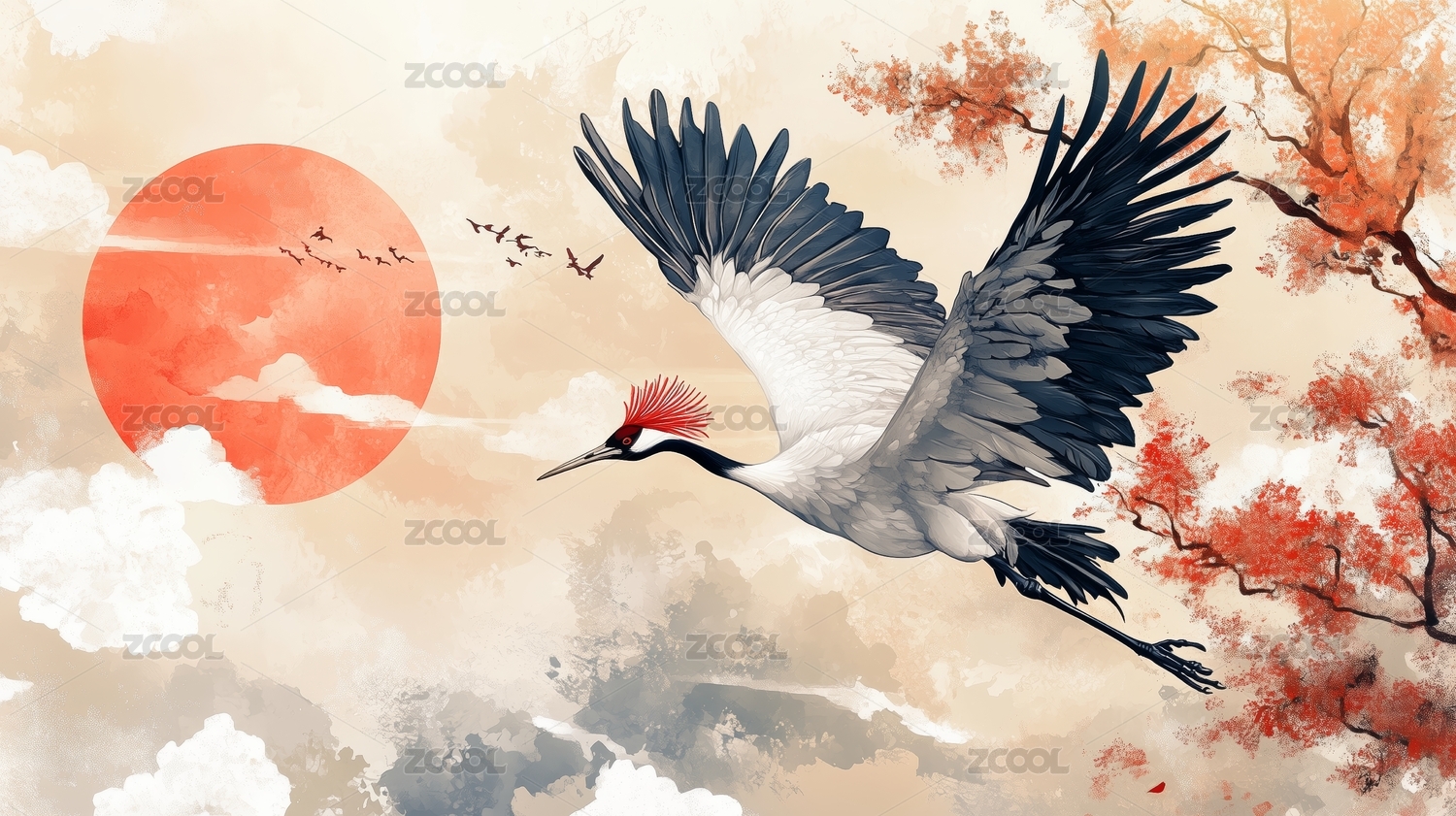 重阳节主题背景仙鹤丹顶鹤中国风国画工笔画