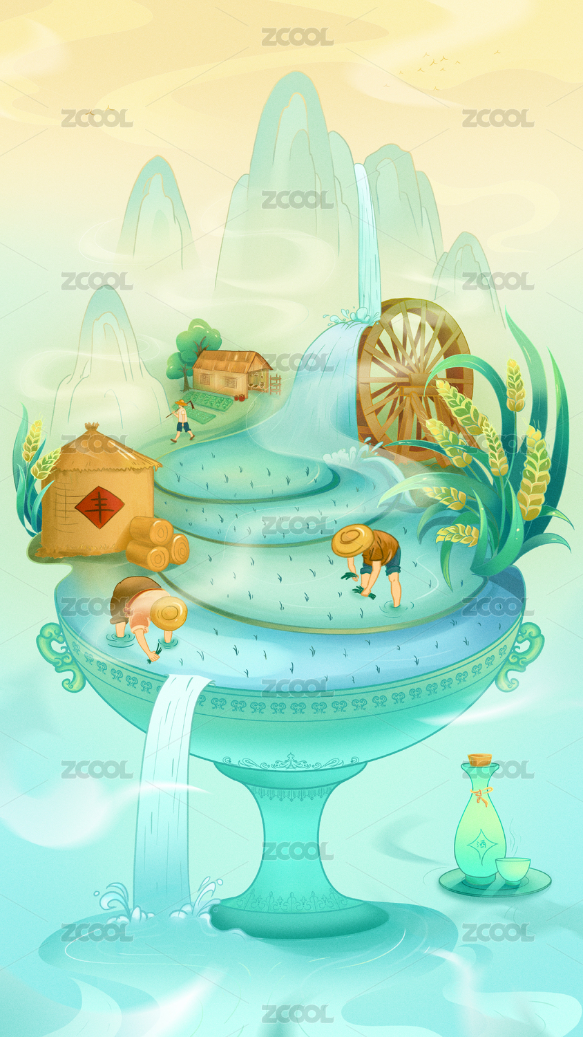 节气,节日,小满,水车,国潮,自然