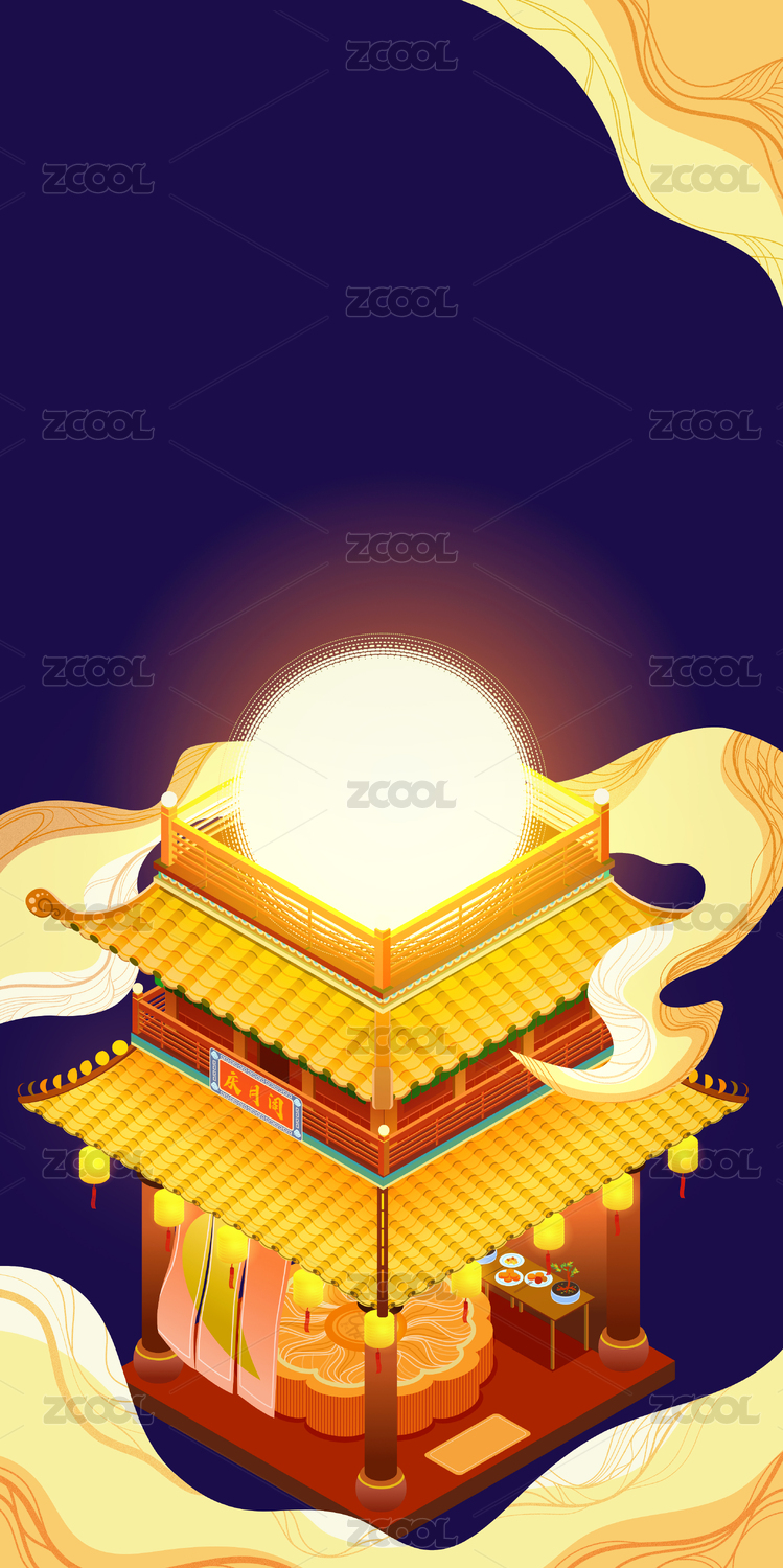 中秋圆月原创阁楼图
