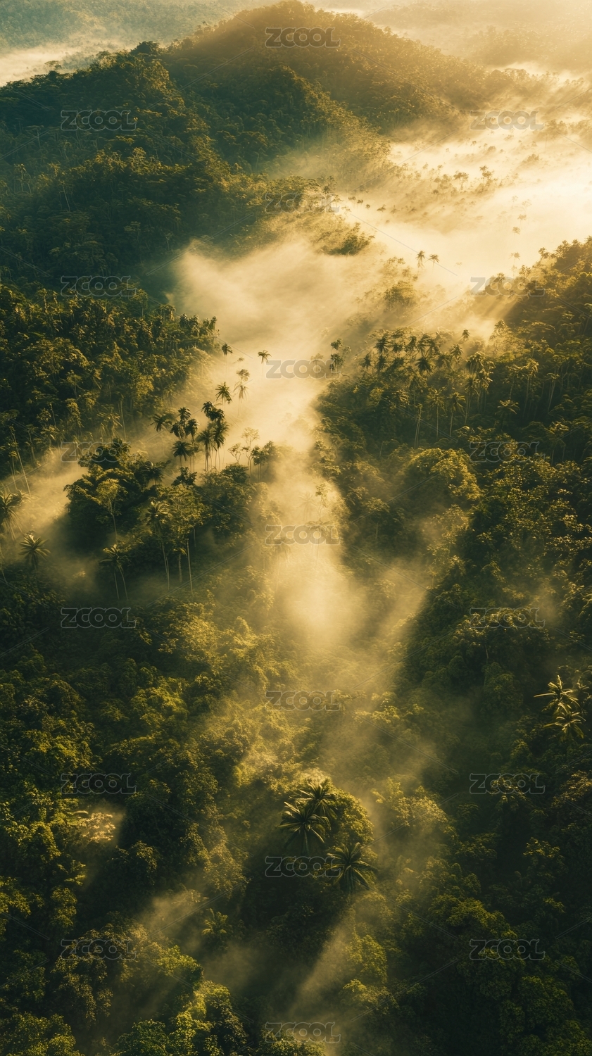 晨雾缭绕的山林景观