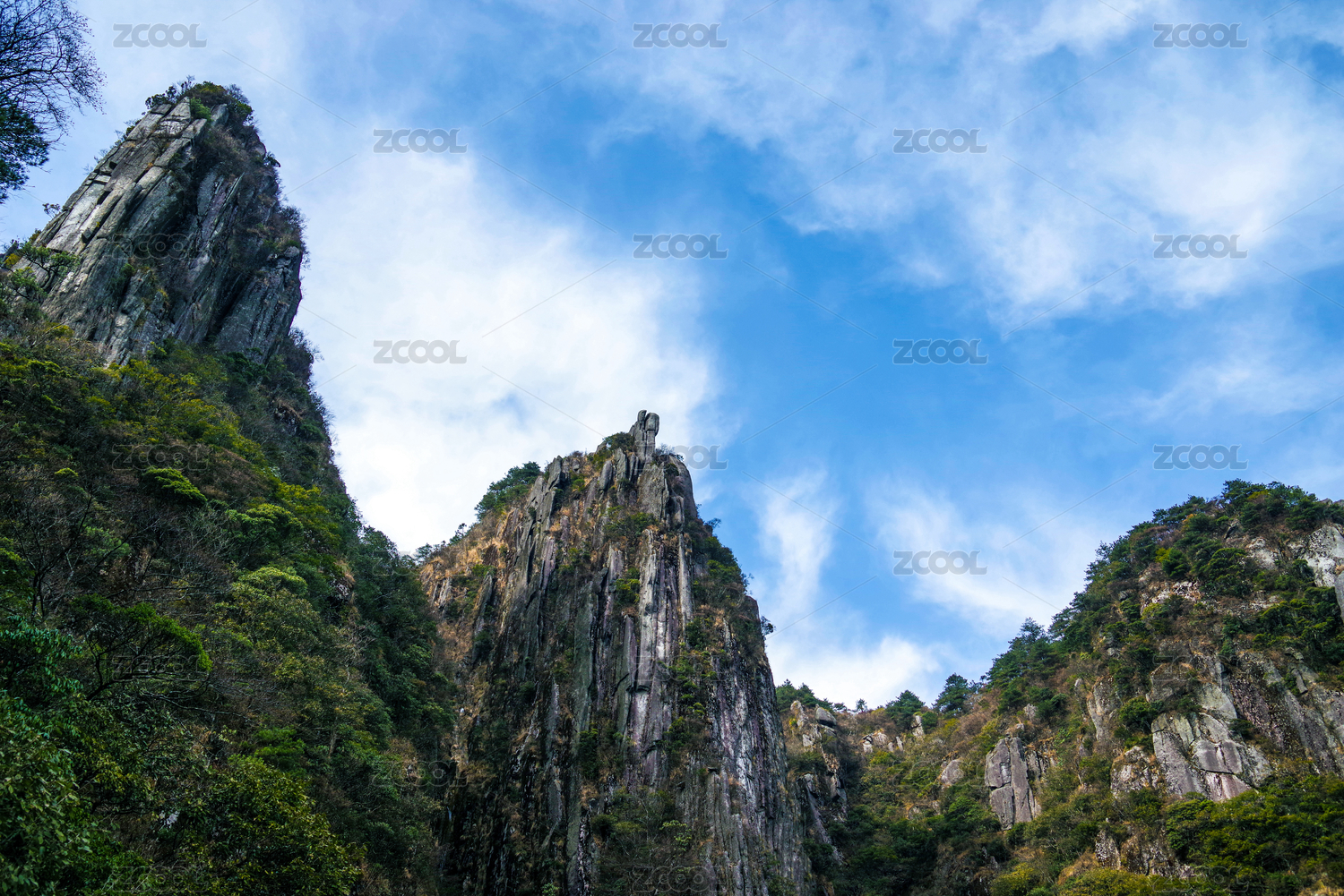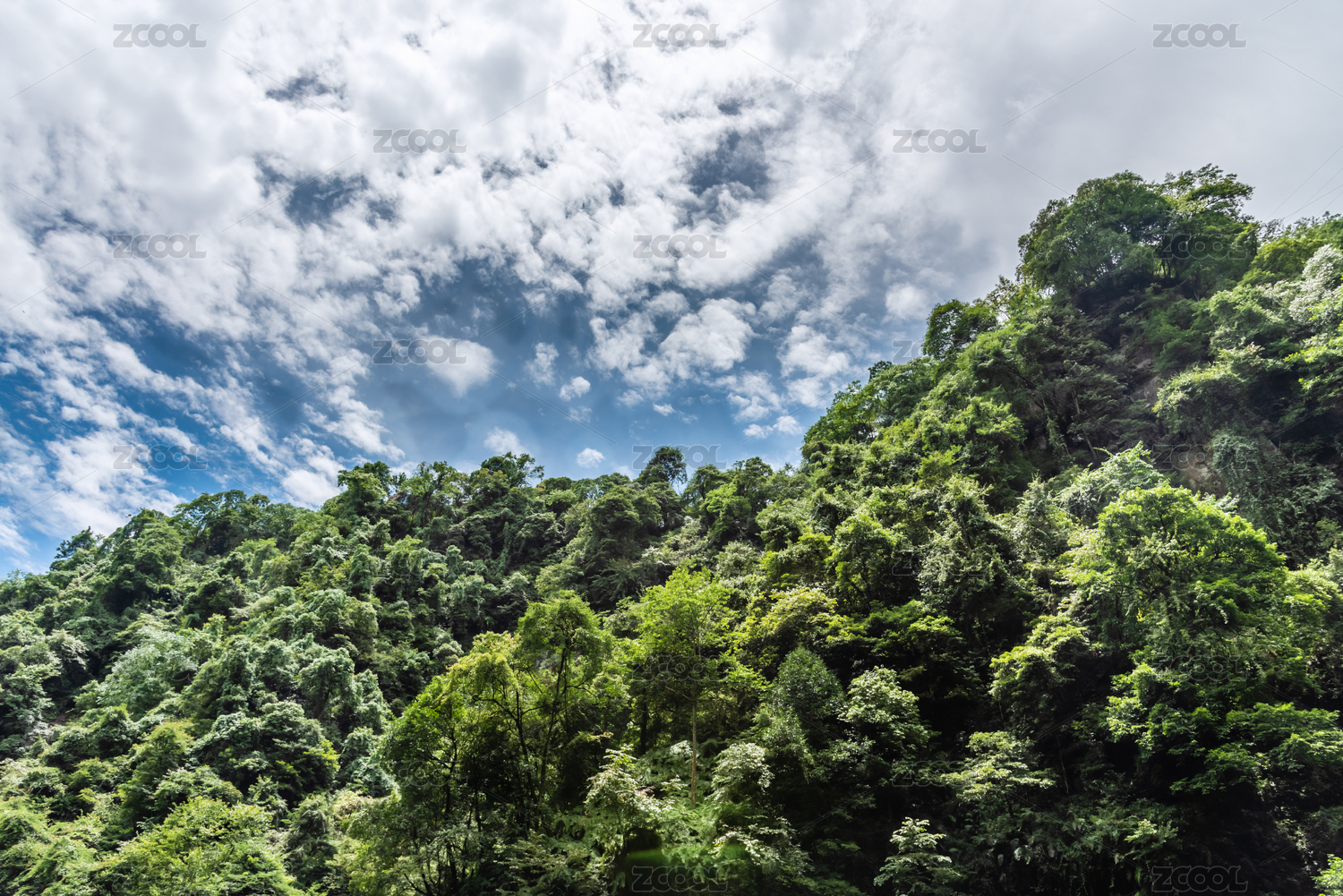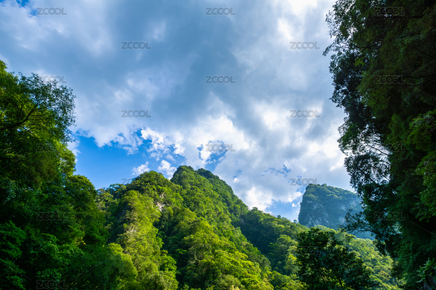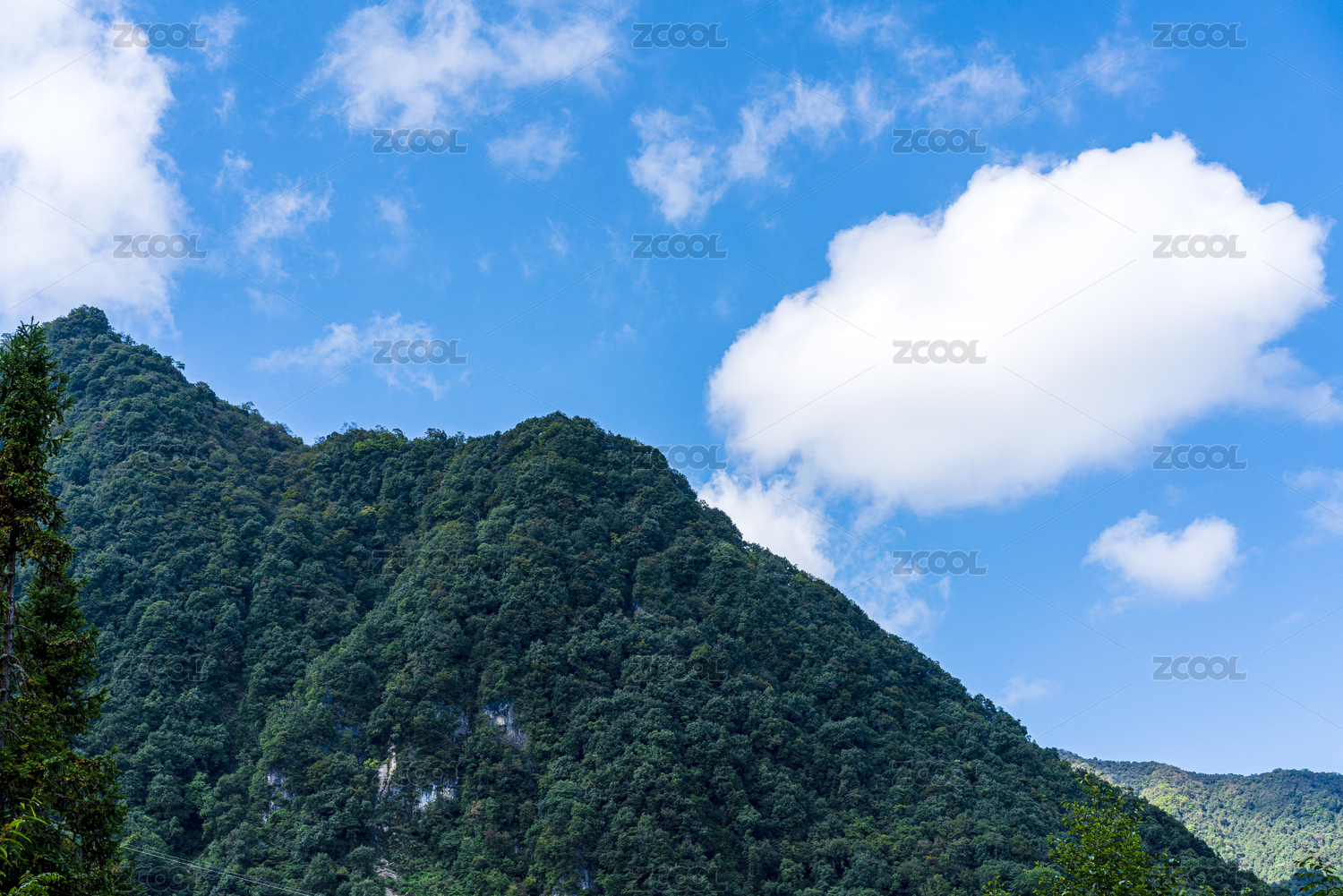 葱茏山崖与蓝天白云