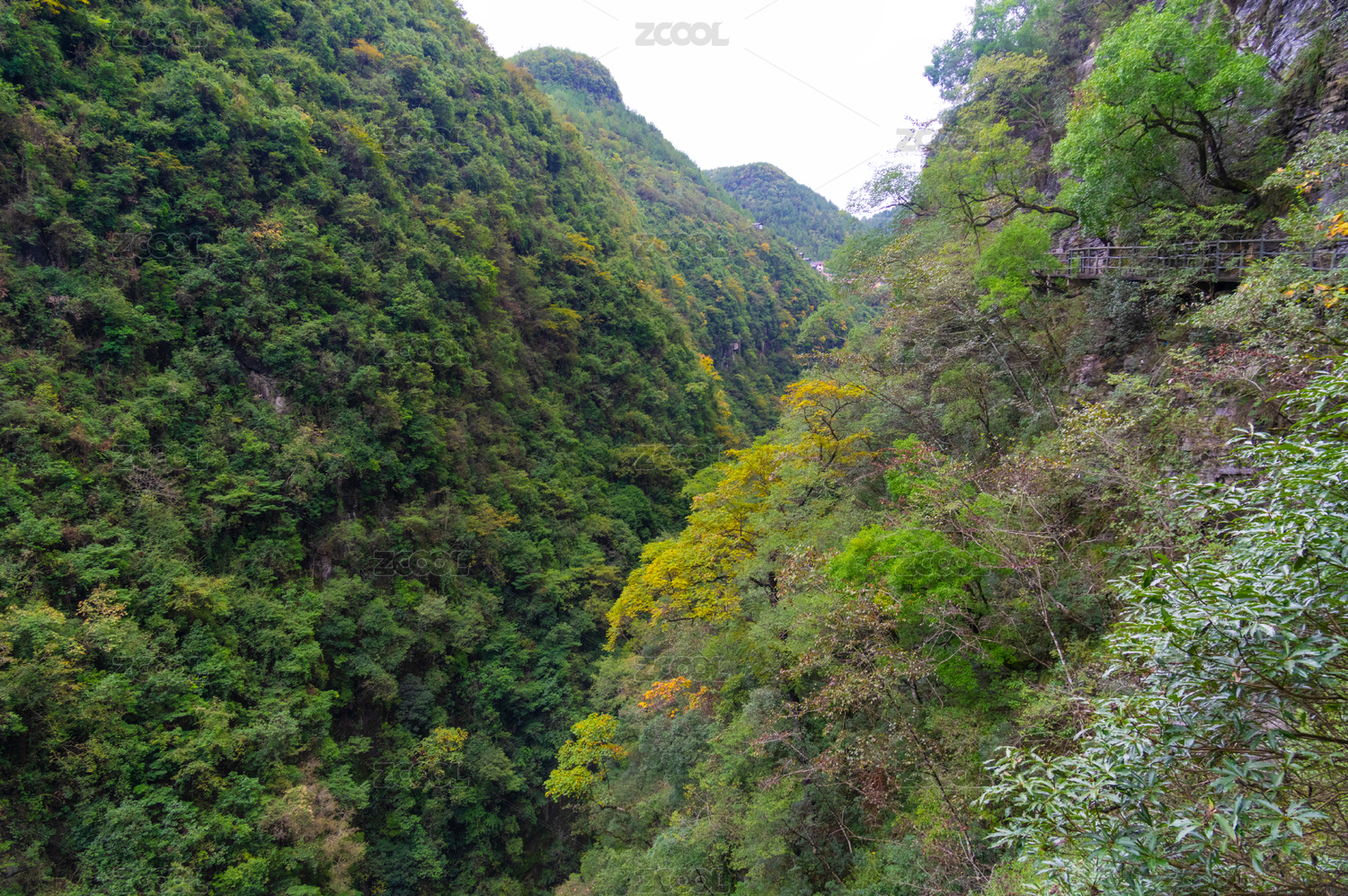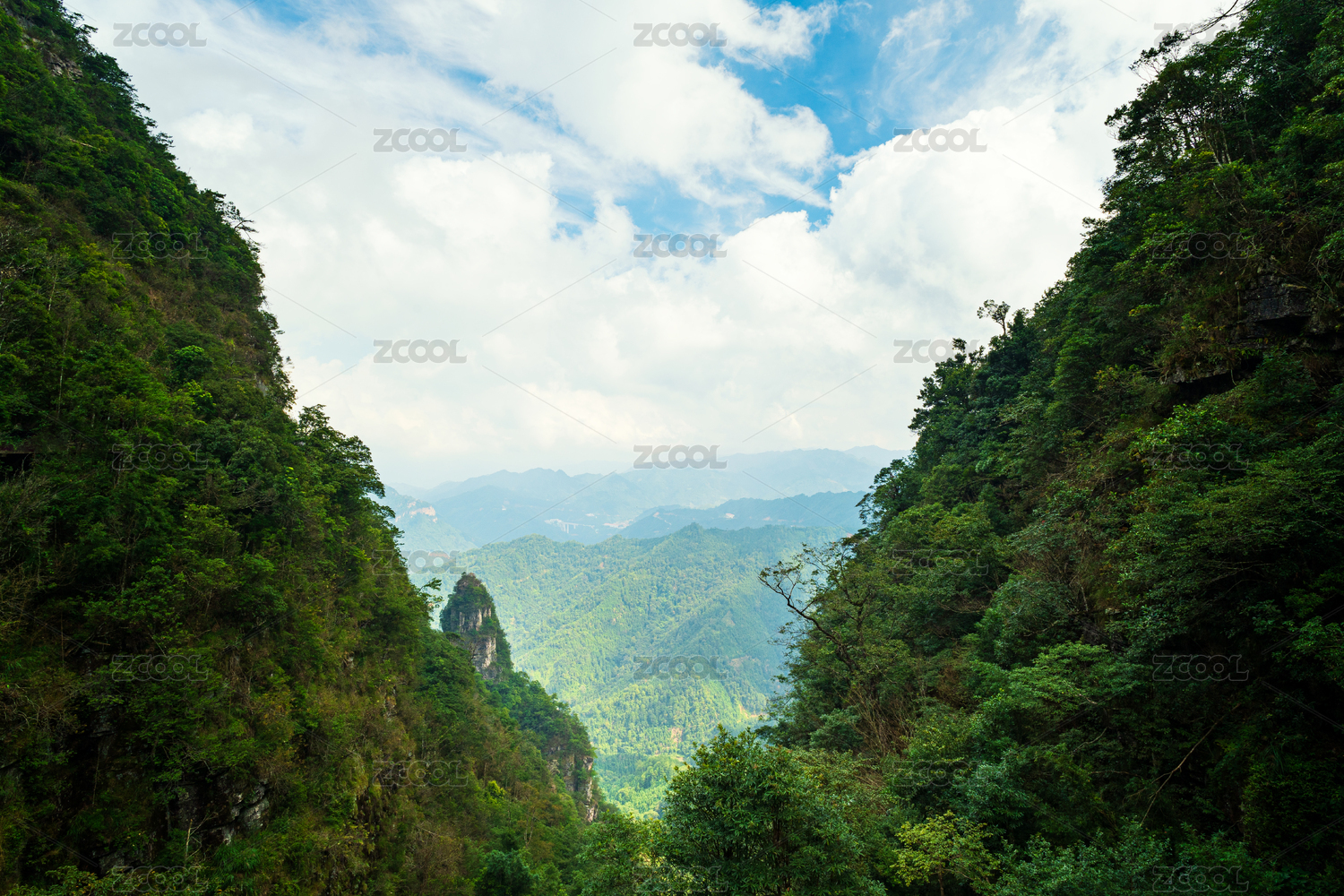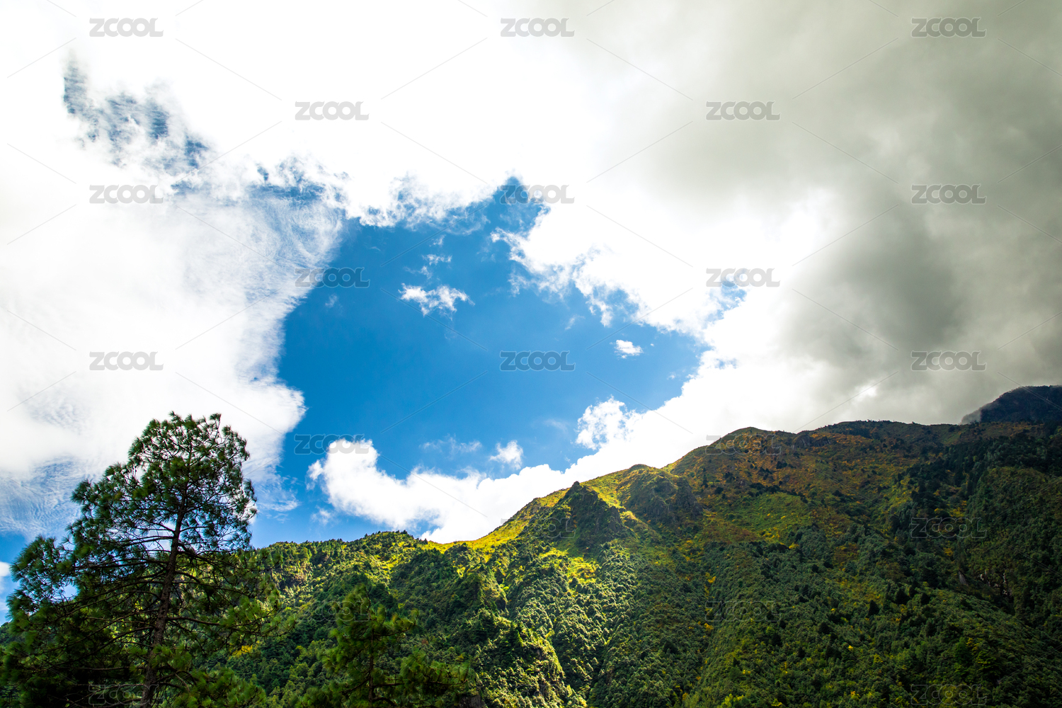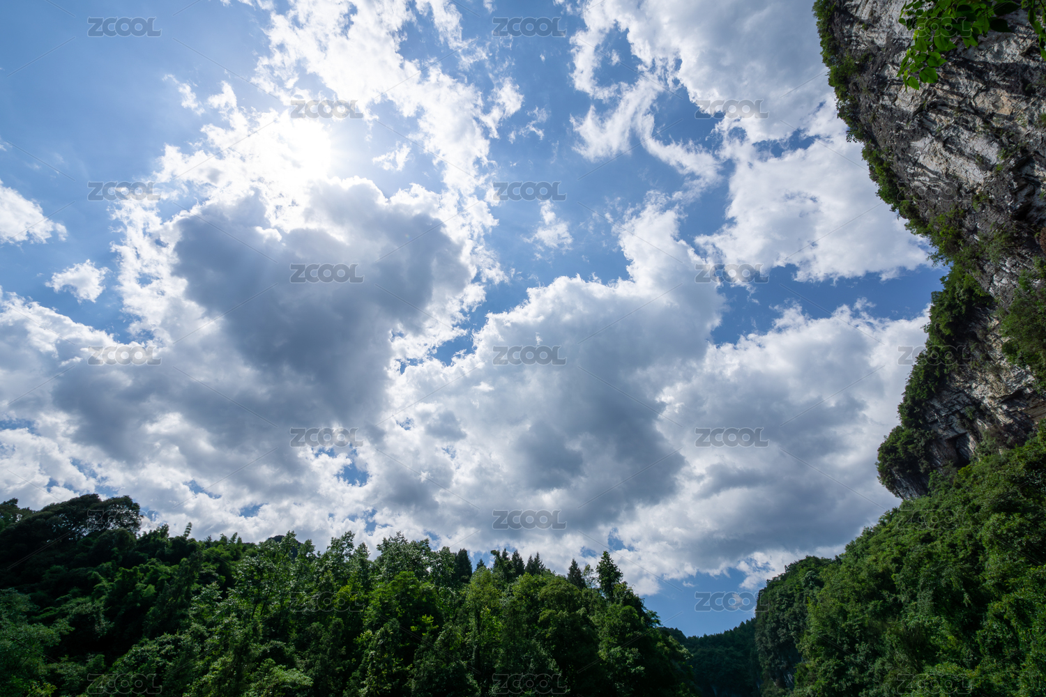 葱茏山崖与云天