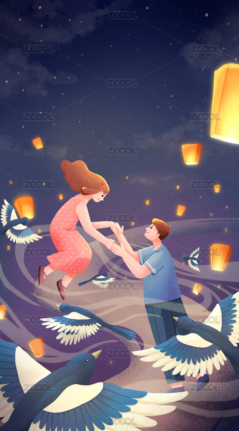 七夕情人节节日手绘插画