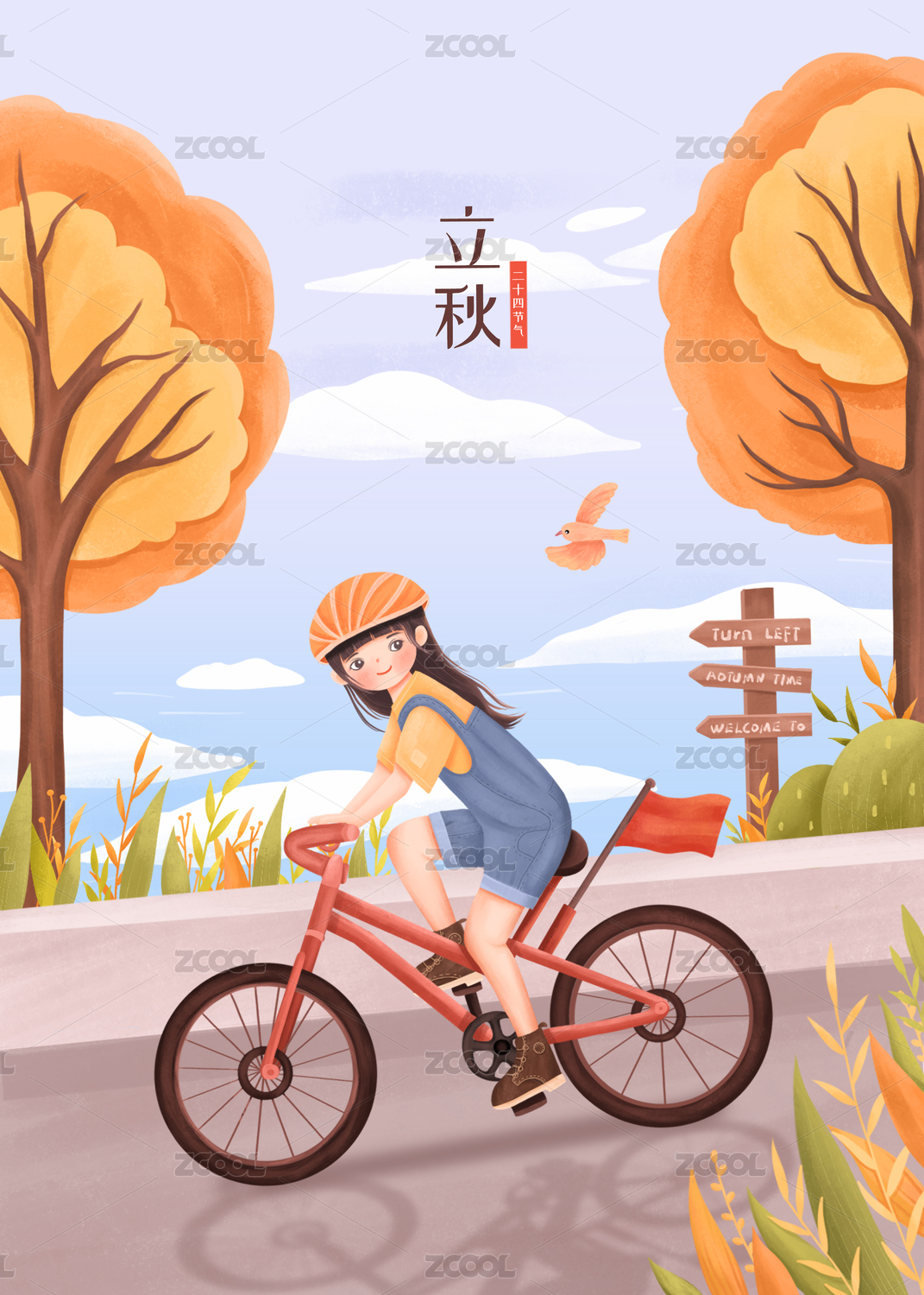 二十四节气,节气,立秋,枫叶,卡通,女孩,黄色,叶子,落叶