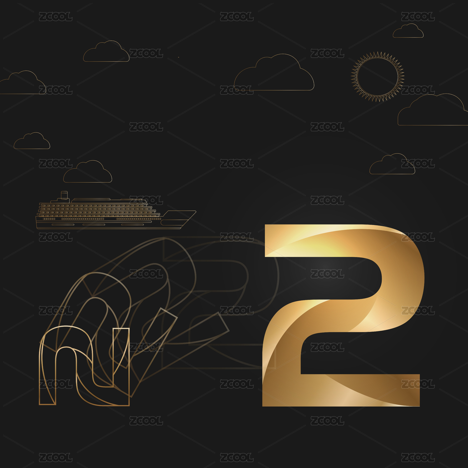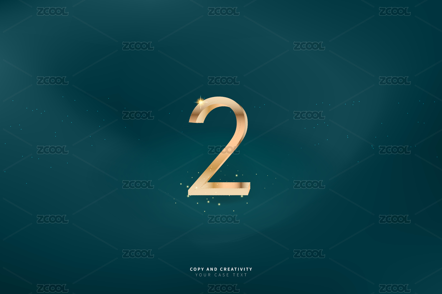 墨绿色背景轻奢金色立体数字2创意设计海报