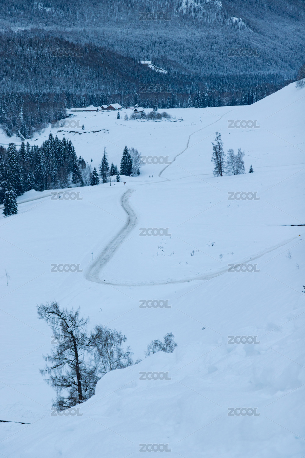 中国新疆阿勒泰地区禾木村冬季雪景