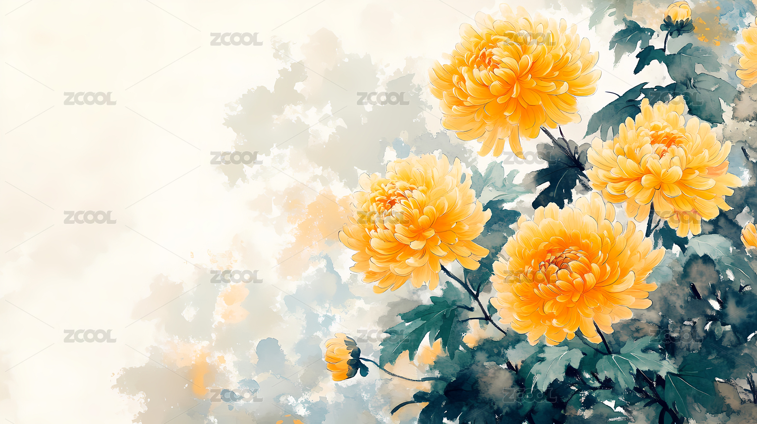 重阳节,菊花,红色,黄色,绿色,插画,绘画,水墨画,节日,旅游
