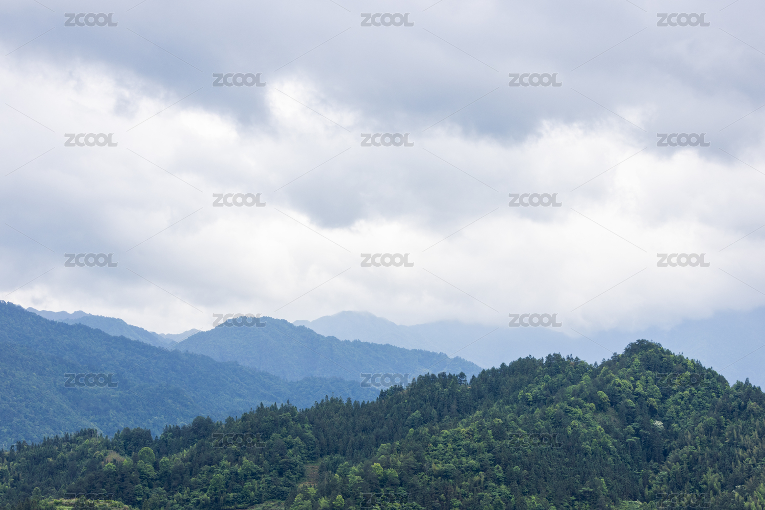 中国广西桂林龙脊梯田山峦云雾缭绕