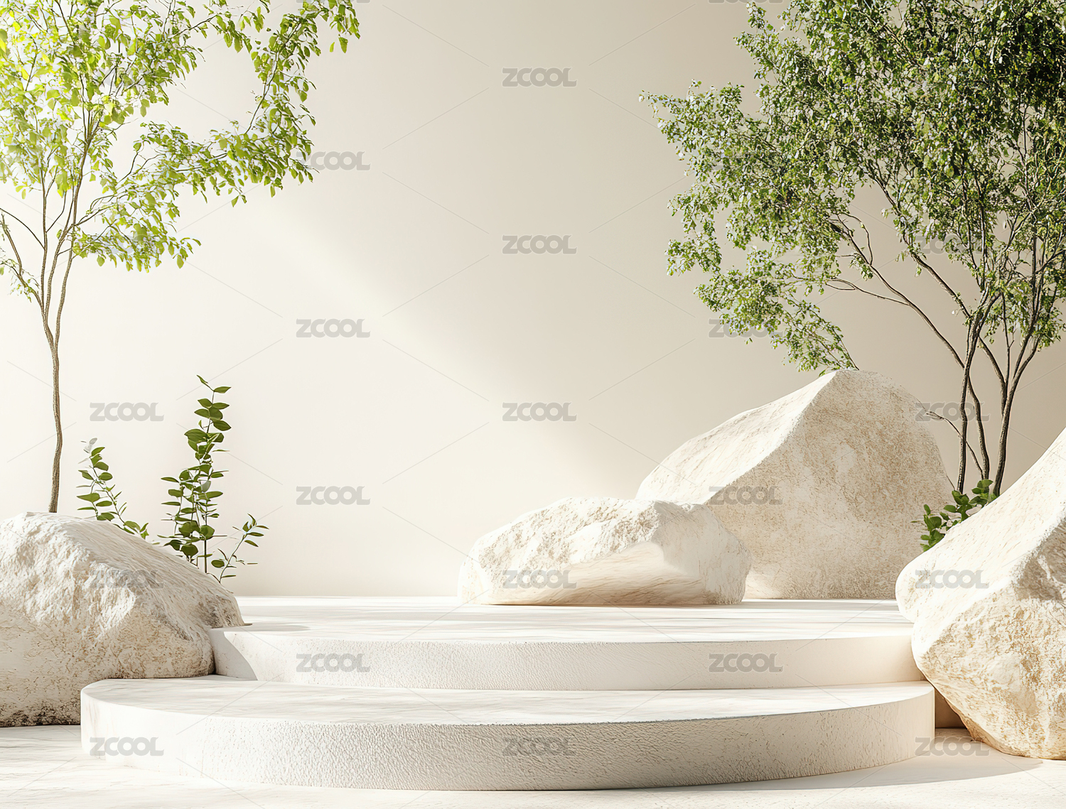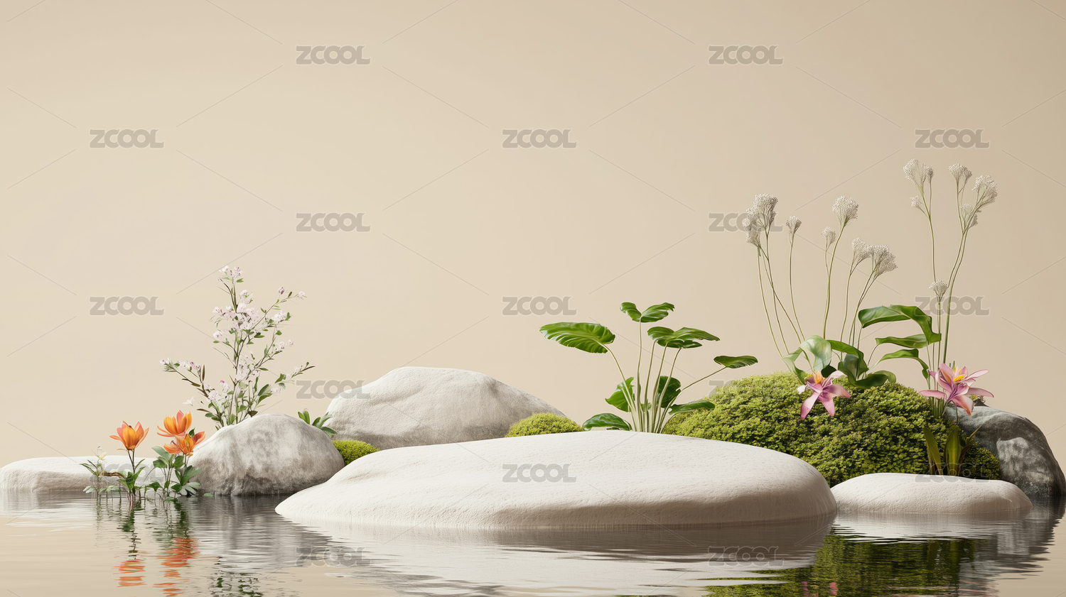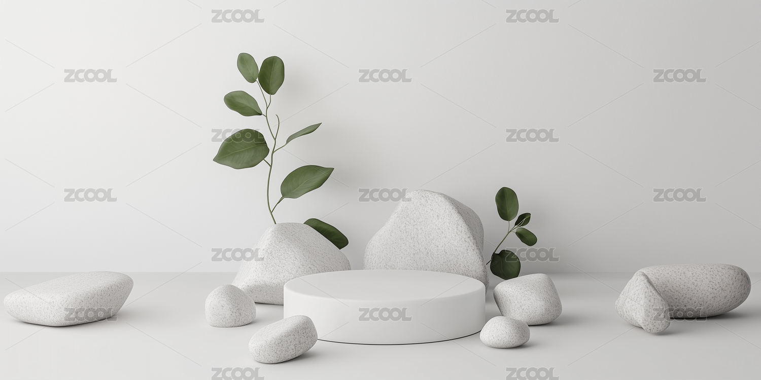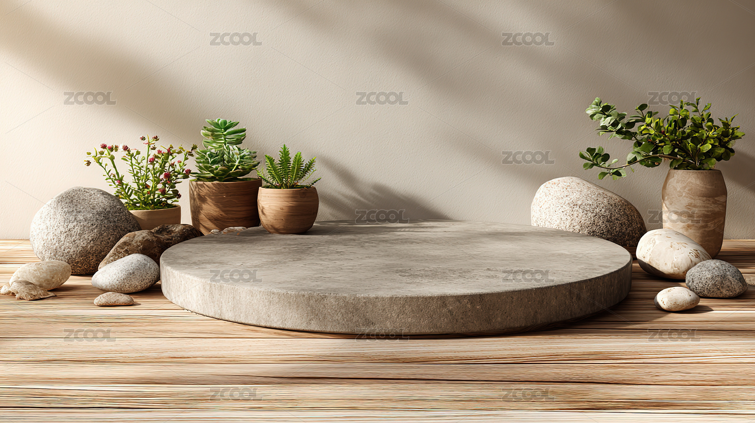 盆栽绿植与鹅卵石,静谧桌面氛围