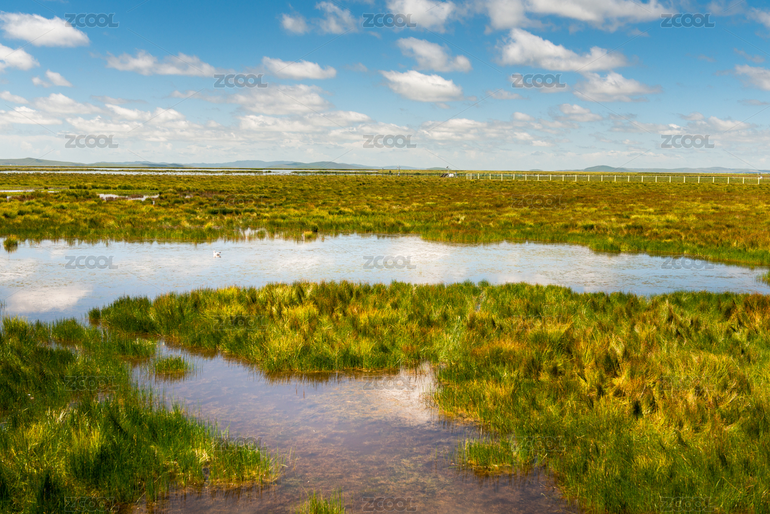 中国新疆伊犁昭苏湿地公园草原马自然风光