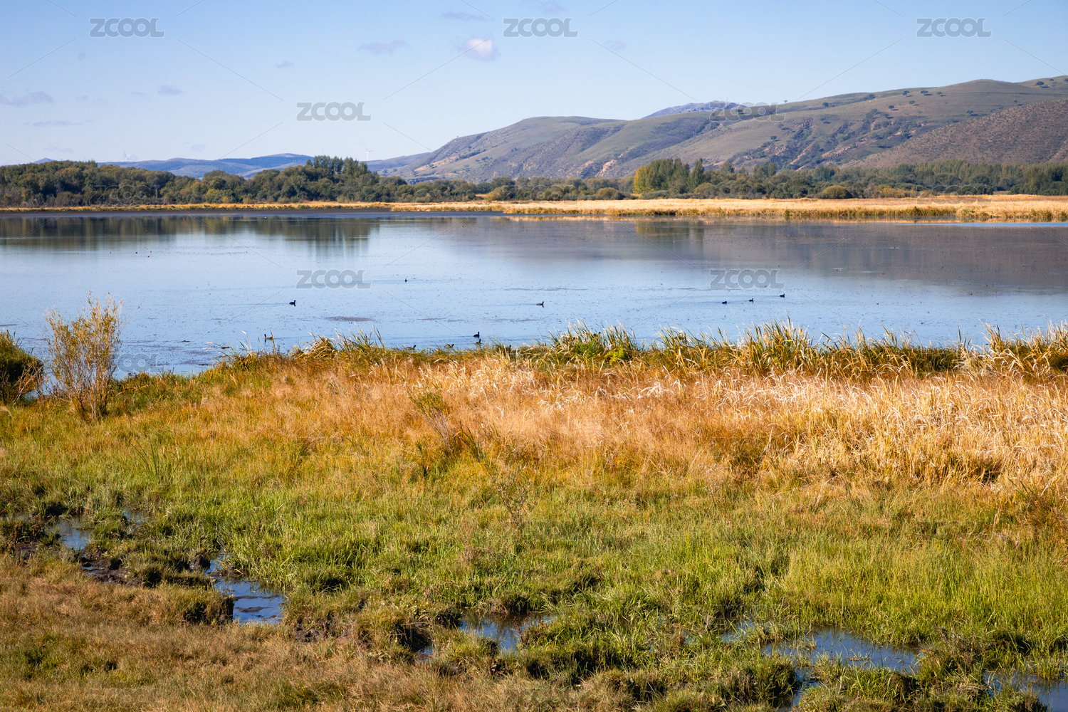 中国西藏萨嘎到霍尔乡219国道旁湿地秋色