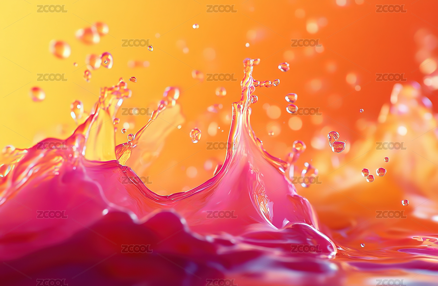 色彩斑斓液体泼溅展现梦幻流动与活力