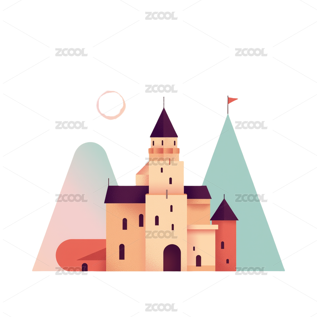 月亮下的童话城堡几何壁纸插画