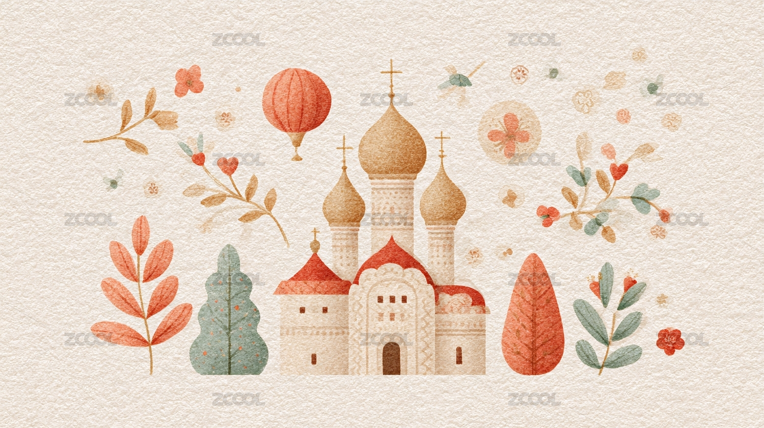 手绘城堡与花草插画